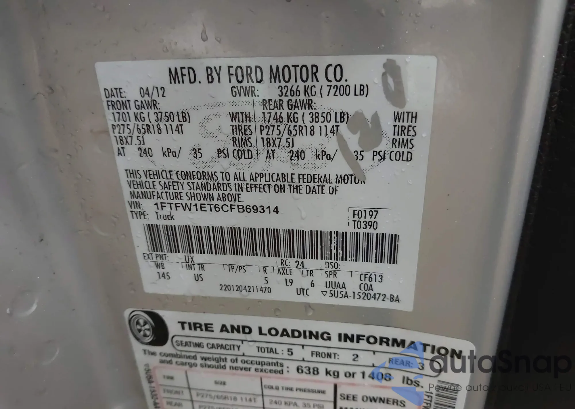 VIN: 1FTFW1ET6CFB69314