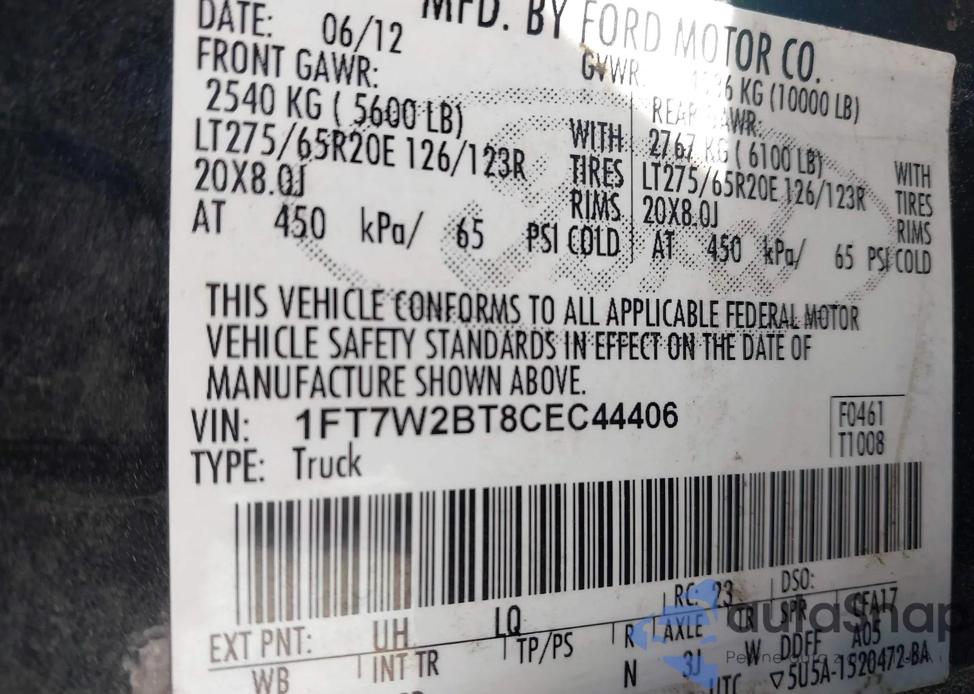 The car Ford F250 2012 (VIN 1FT7W2BT8CEC44406) has not been auctioned before. The documents are clean, and the mileage matches or is below the market average. Sold by an insurance company – we recommend purchase. Delivery to the port will take approx. 6–8 weeks.