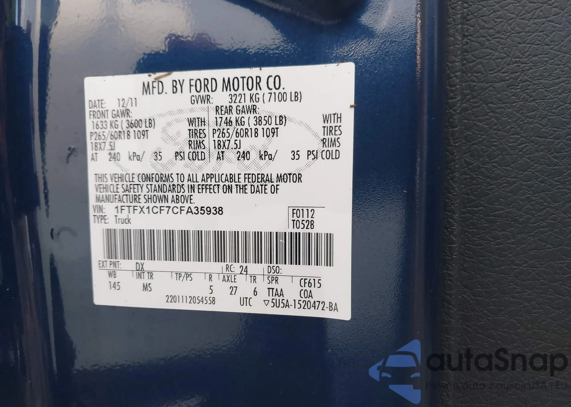 • VIN: 1FTFX1CF7CFA35938