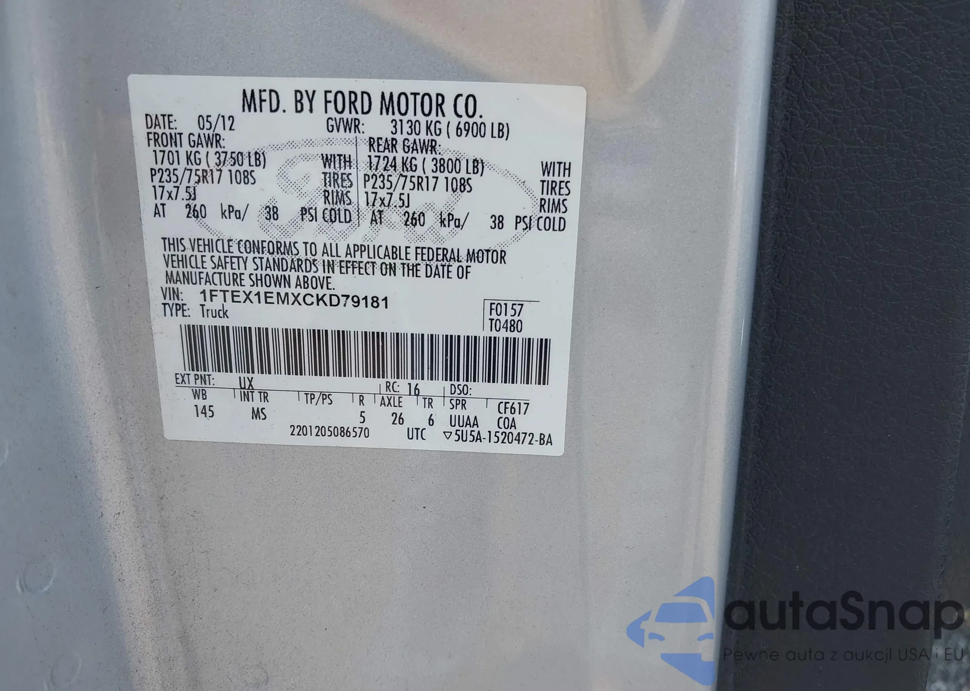 VIN: 1FTEX1EMXCKD79181
