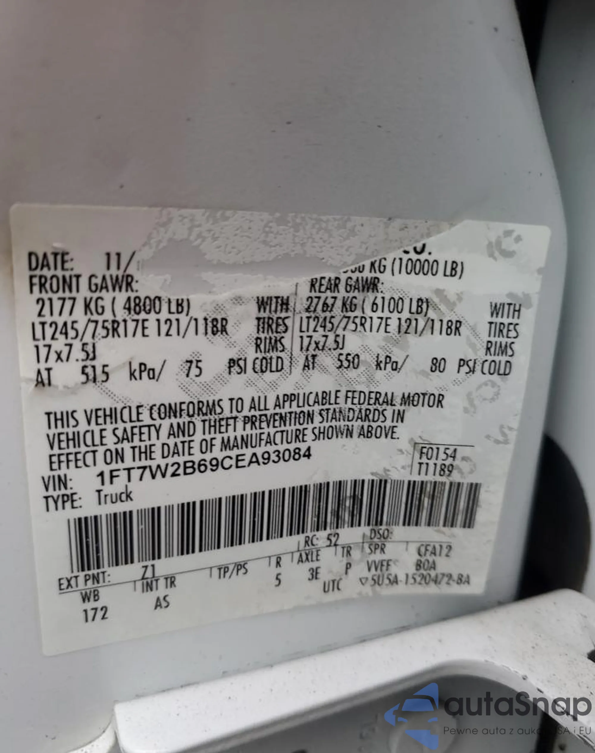 VIN: 1FT7W2B69CEA93084