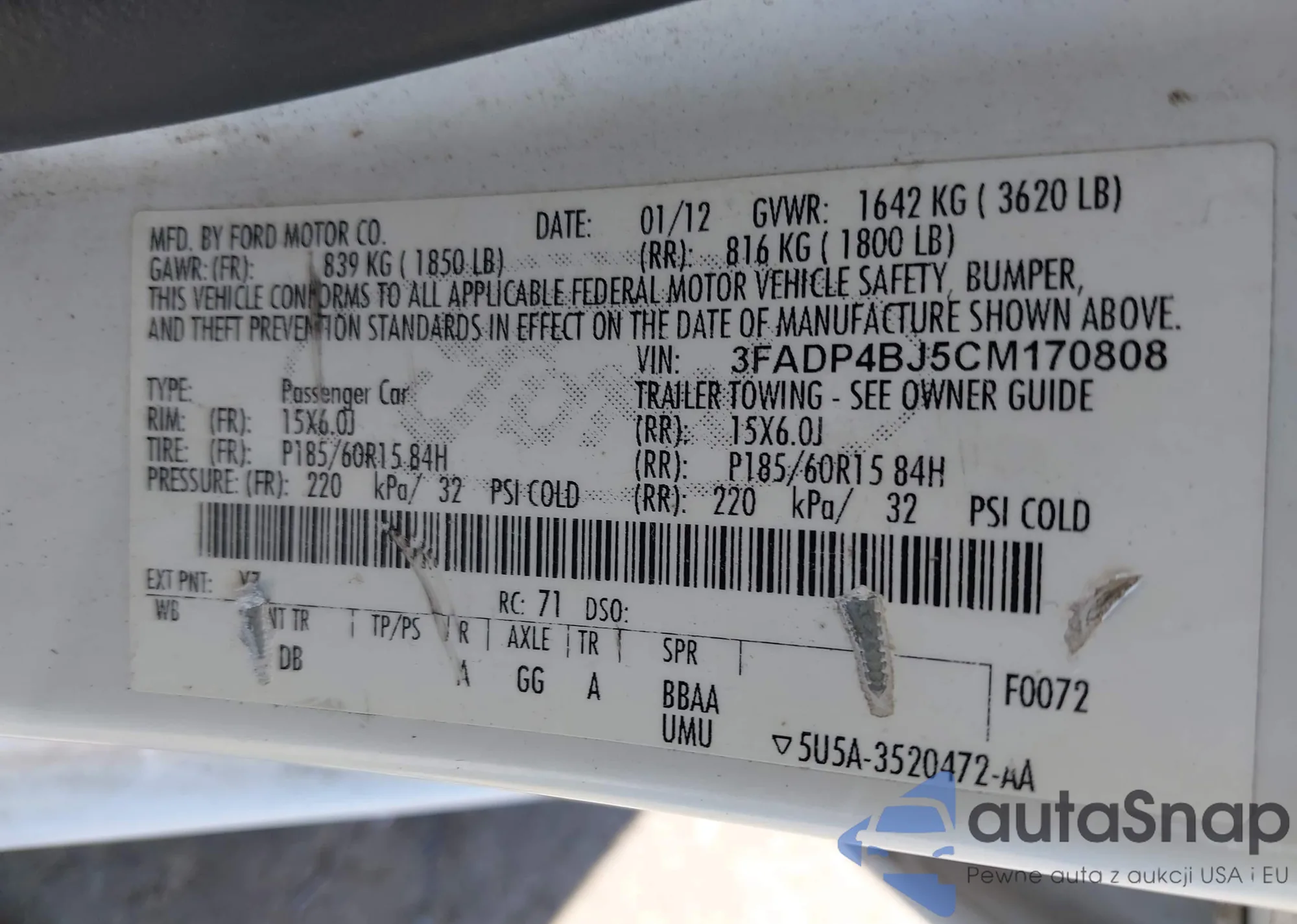 • VIN: 3FADP4BJ5CM170808