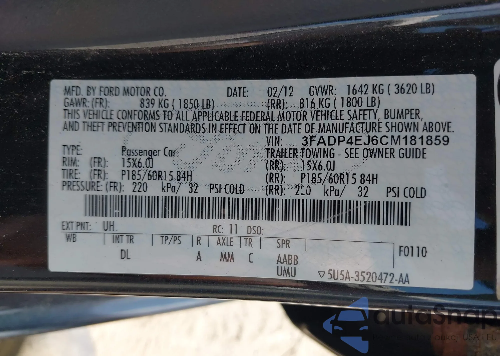 VIN: 3FADP4EJ6CM181859