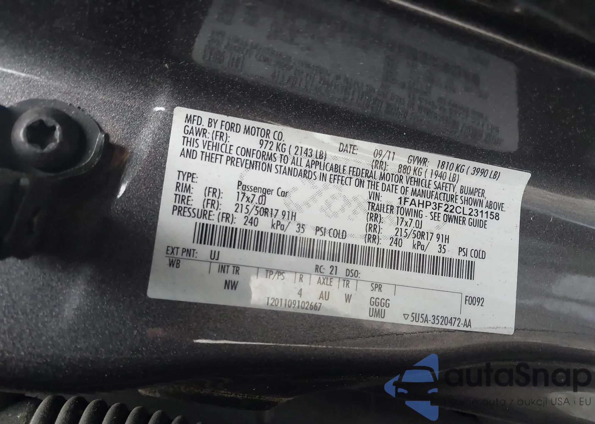 VIN: 1FAHP3F22CL231158