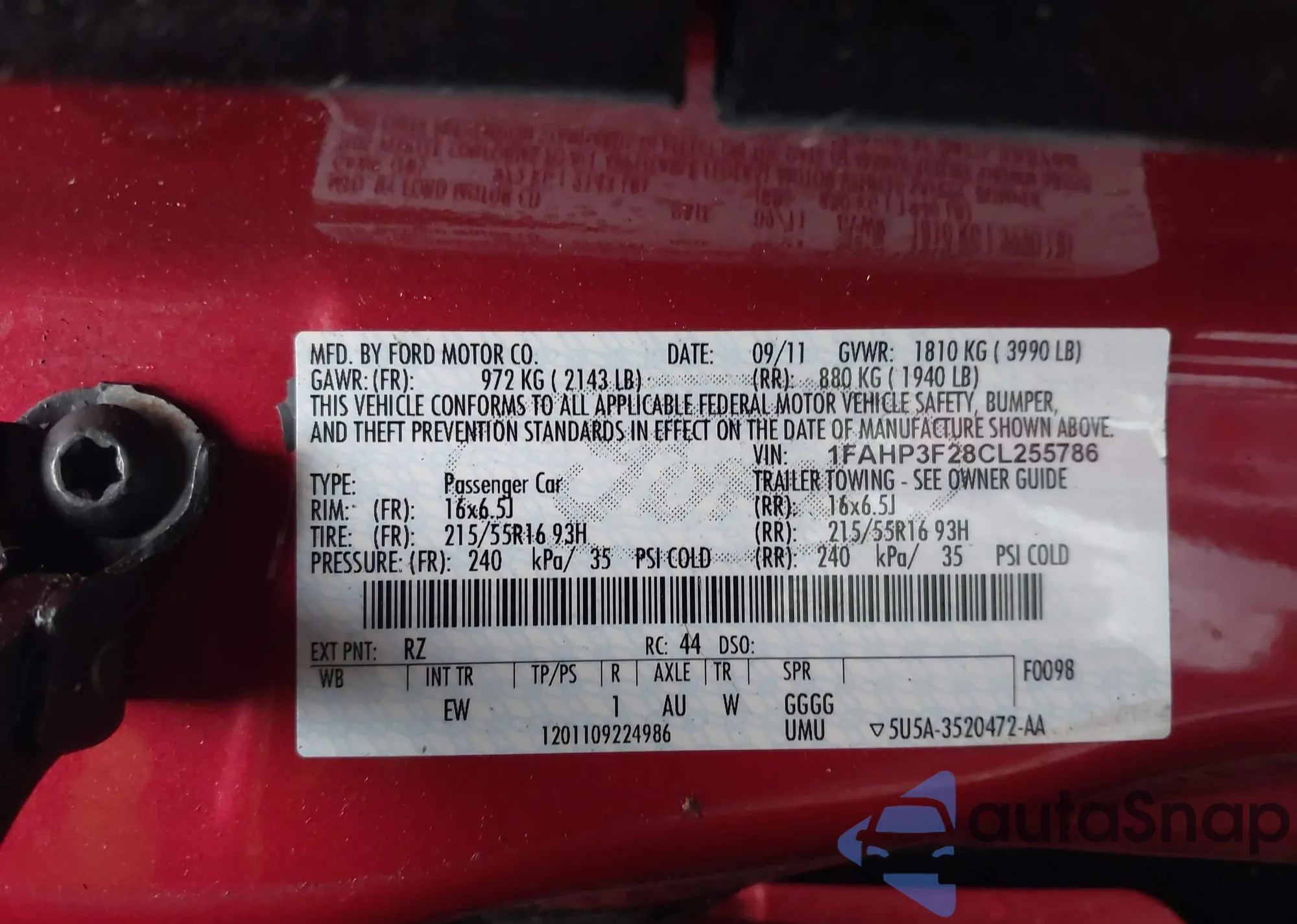 VIN: 1FAHP3F28CL255786