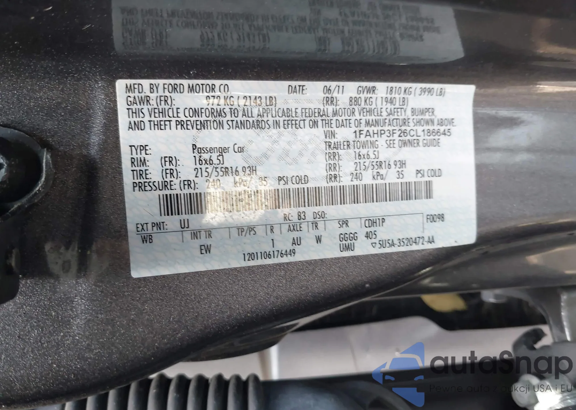 VIN: 1FAHP3F26CL186645