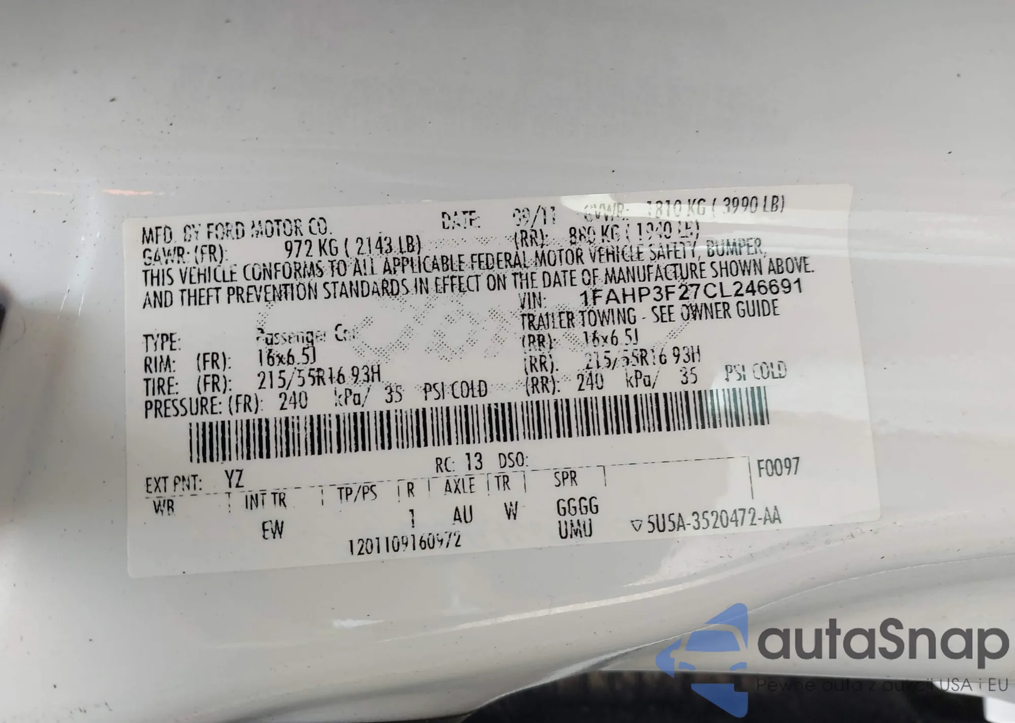 VIN: 1FAHP3F27CL246691