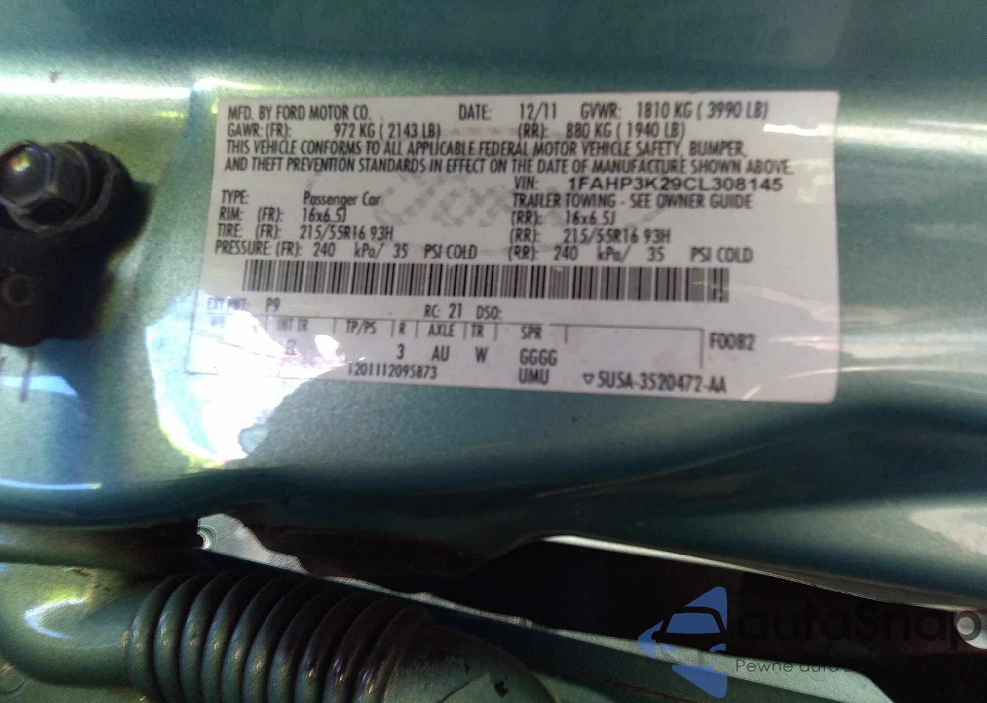 VIN: 1FAHP3K29CL308145