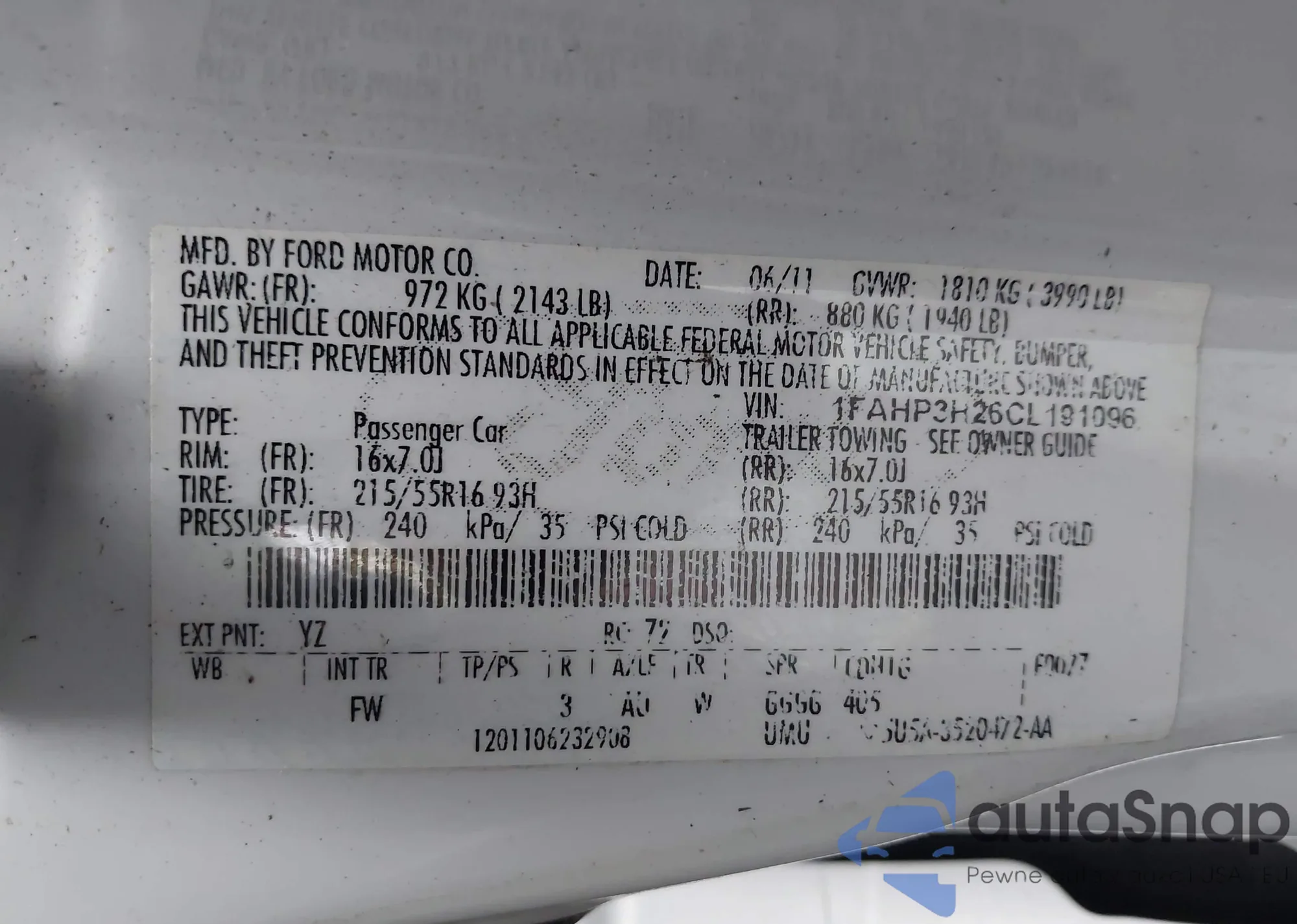 VIN: 1FAHP3H26CL191096