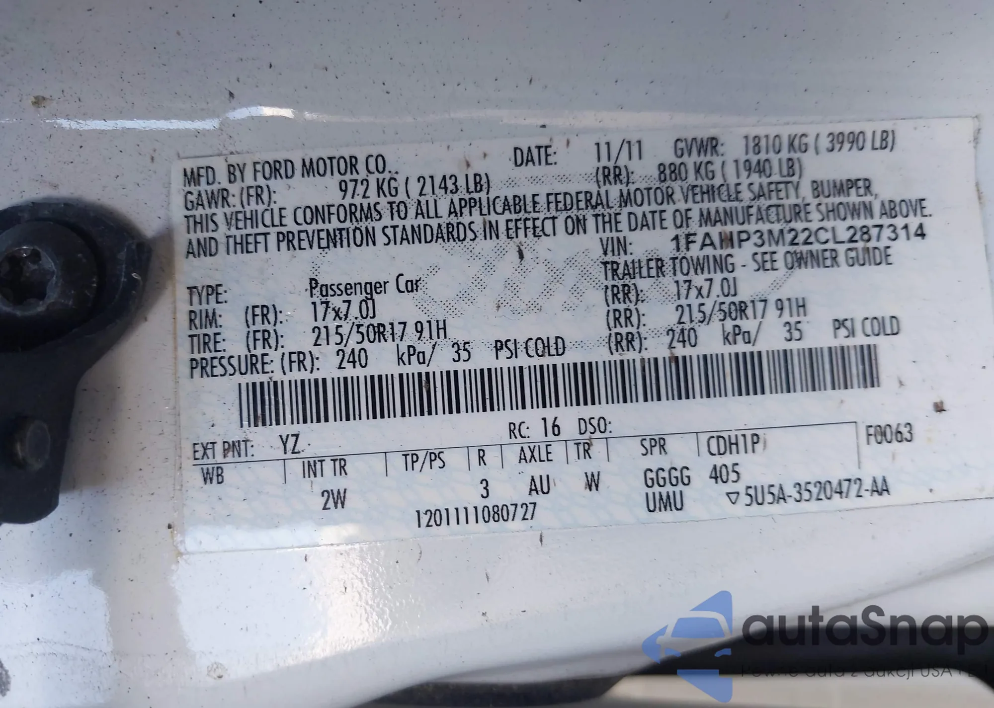 VIN: 1FAHP3M22CL287314