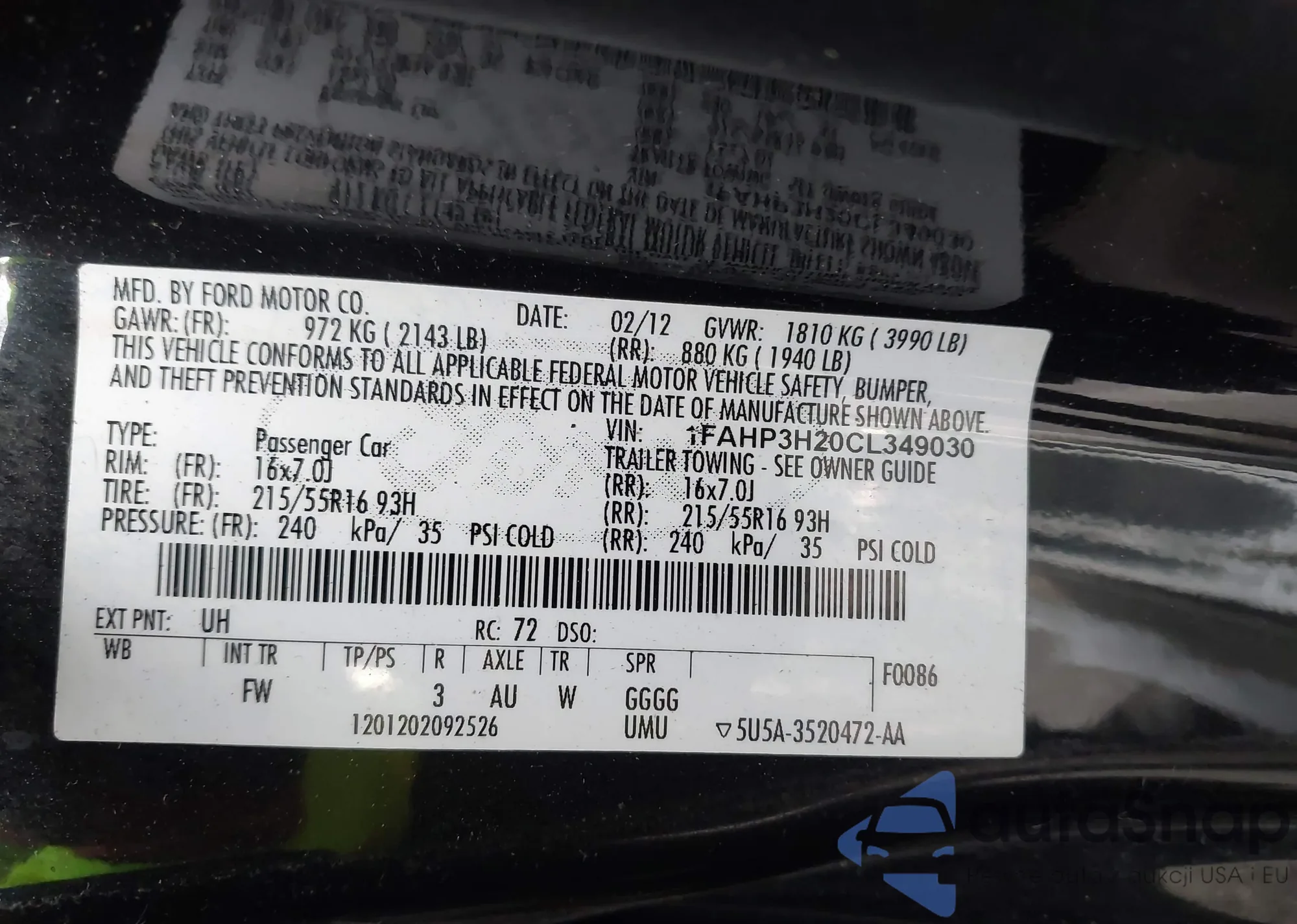 VIN: 1FAHP3H20CL349030