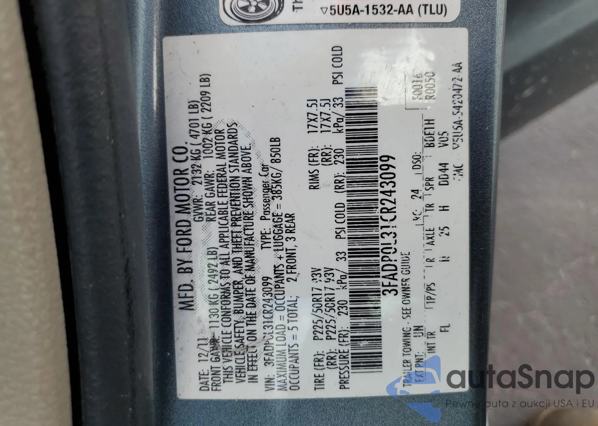 VIN: 3FADP0L31CR243099