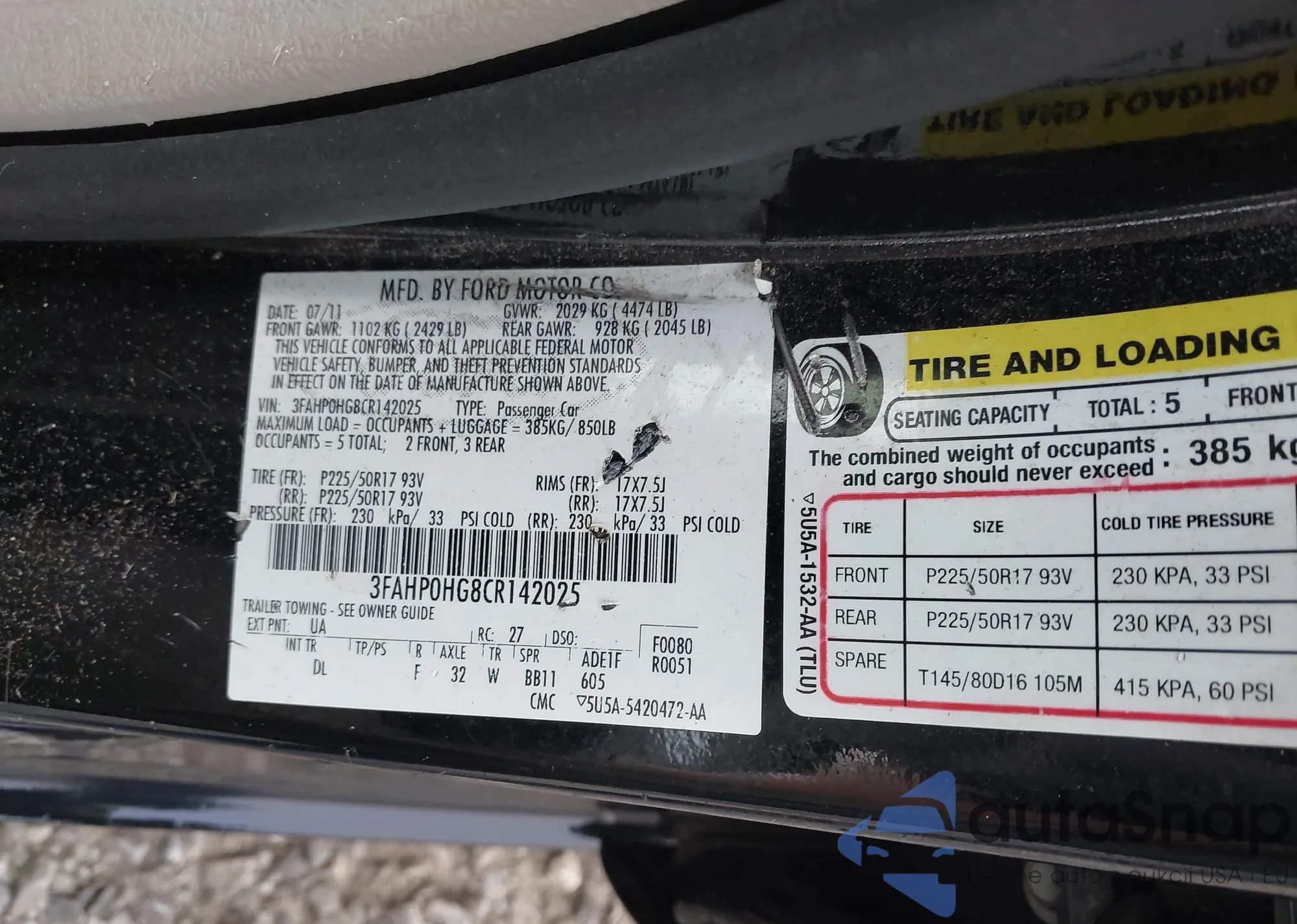 VIN: 3FAHP0HG8CR142025