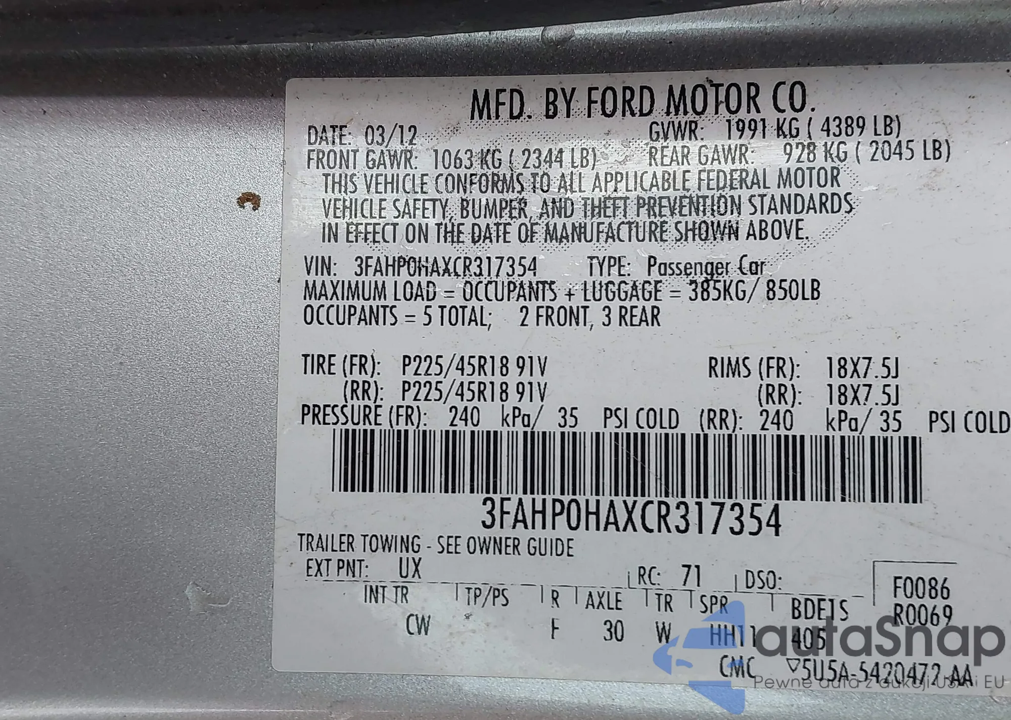 VIN: 3FAHP0HAXCR317354
