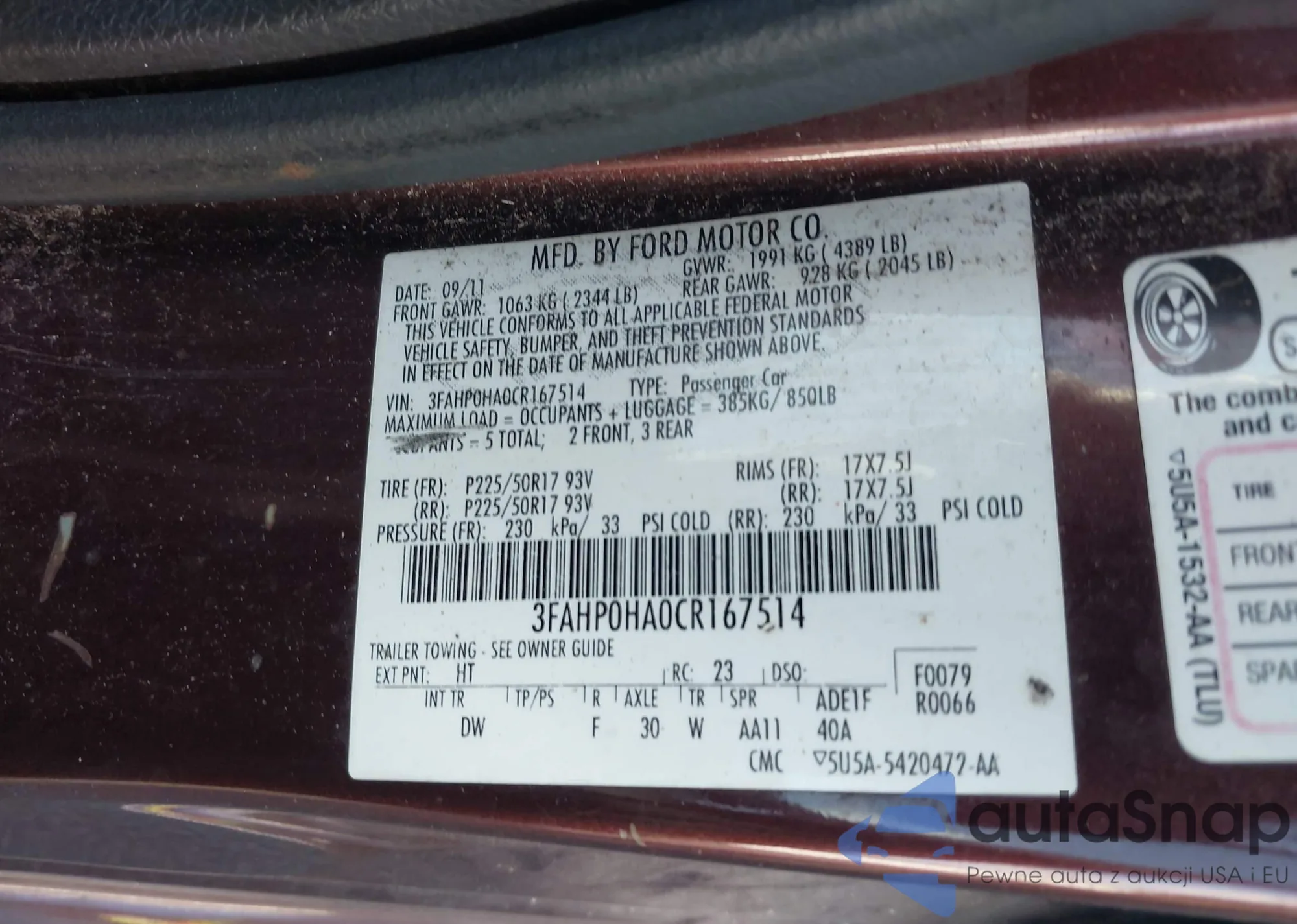 • VIN: 3FAHP0HA0CR167514