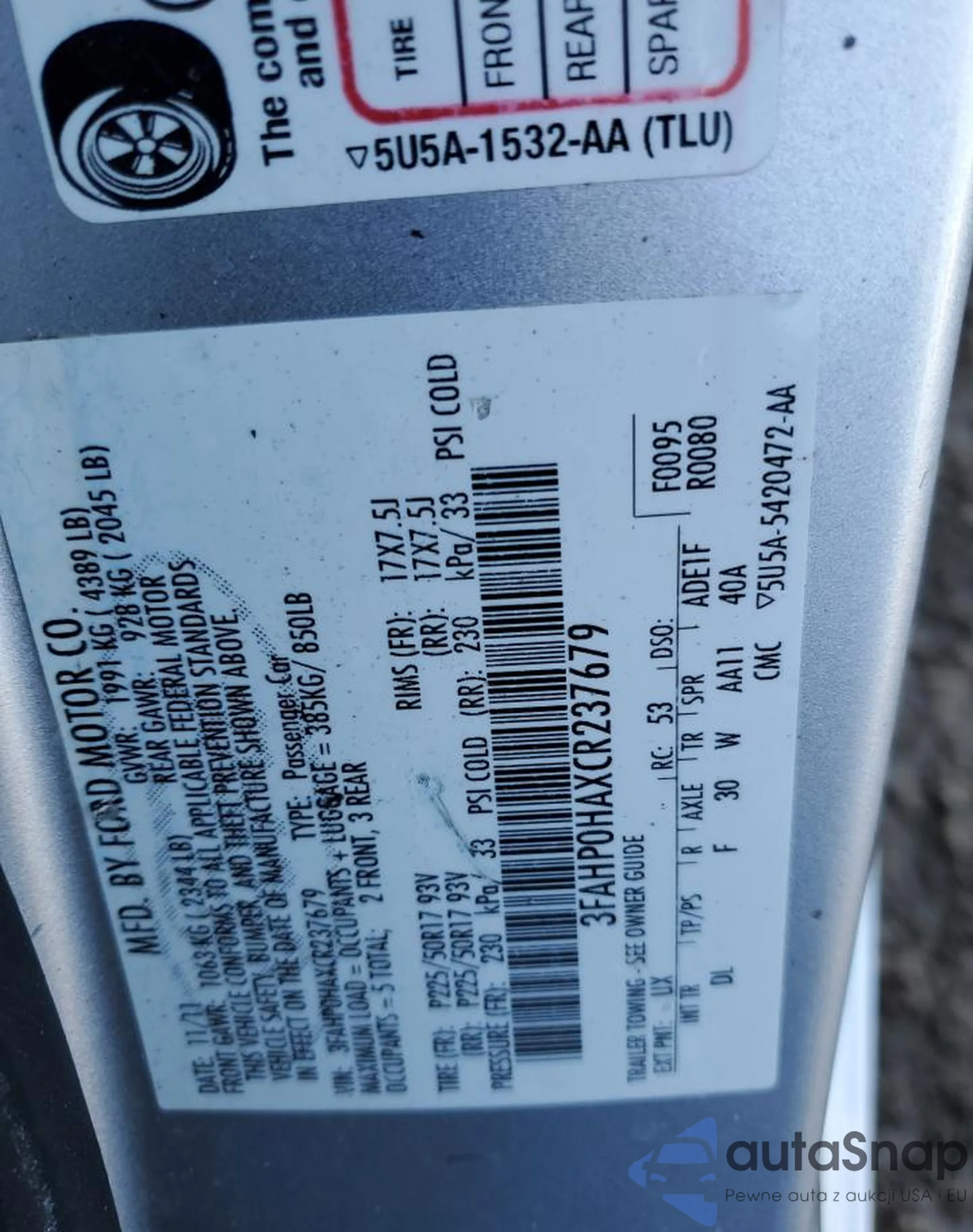 VIN: 3FAHP0HAXCR237679