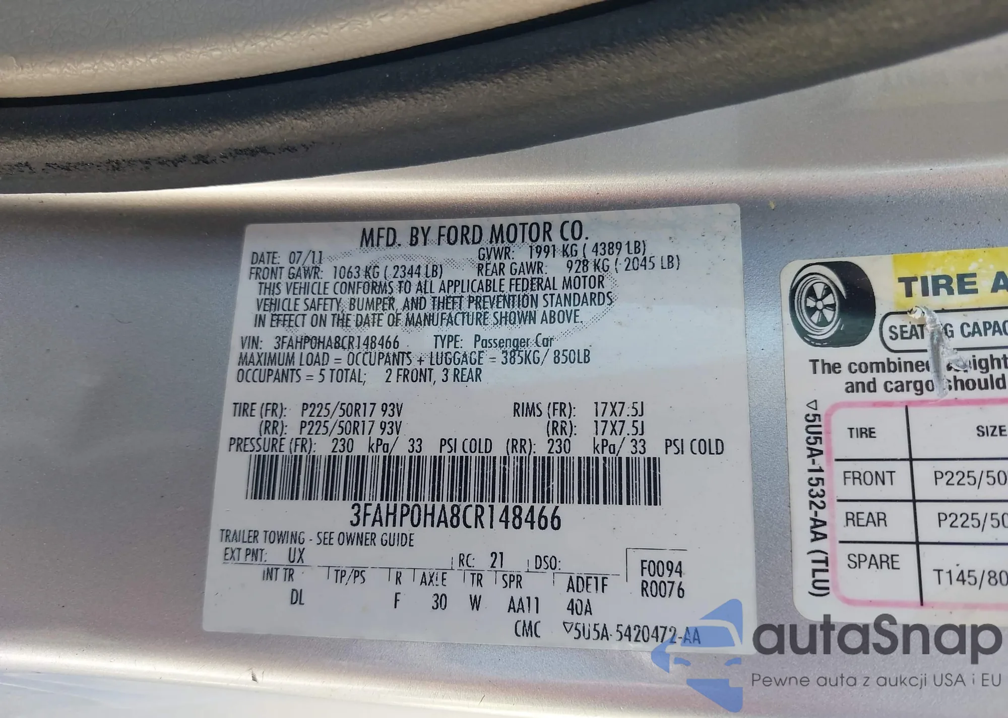 VIN: 3FAHP0HA8CR148466