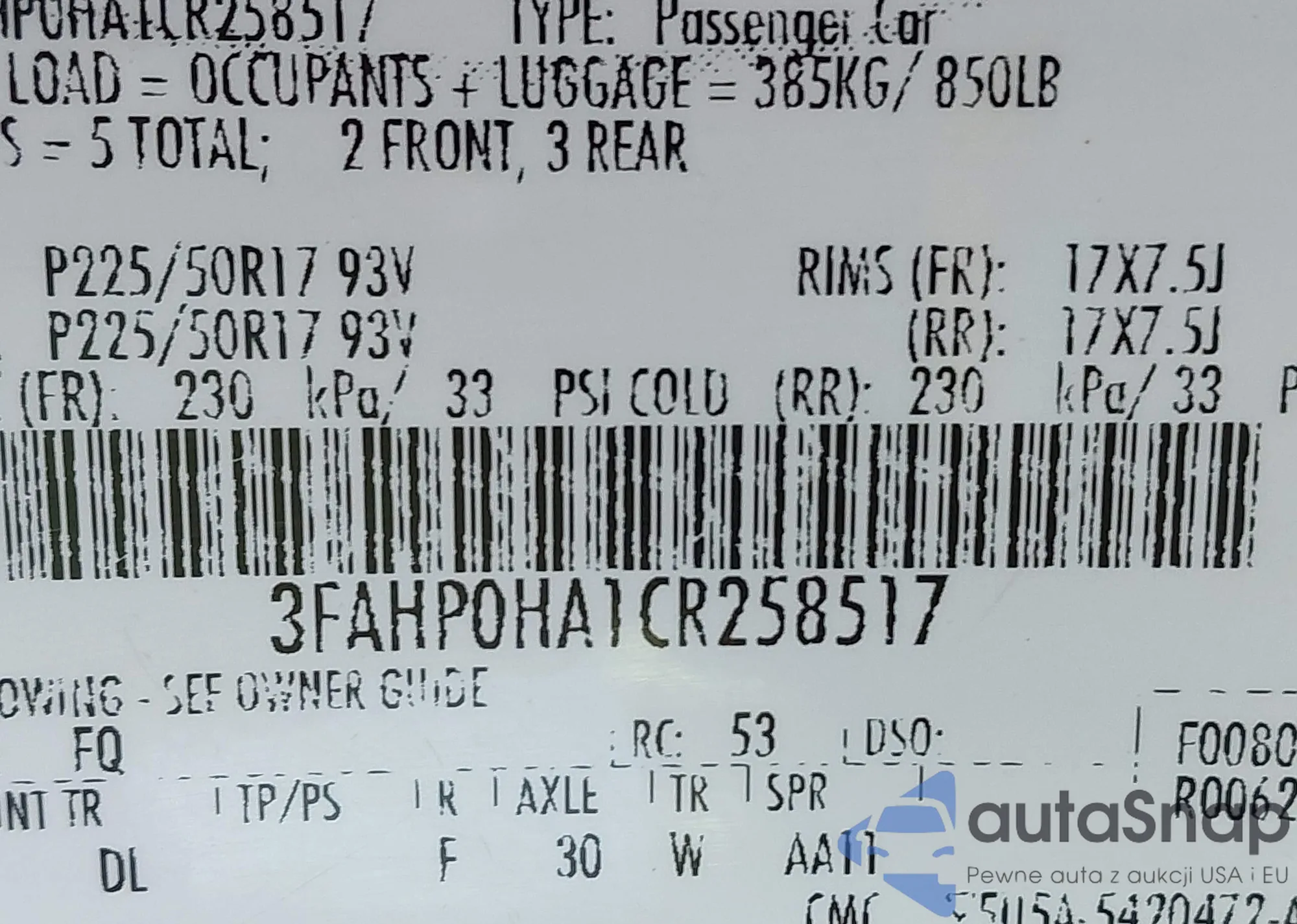 VIN: 3FAHP0HA1CR258517