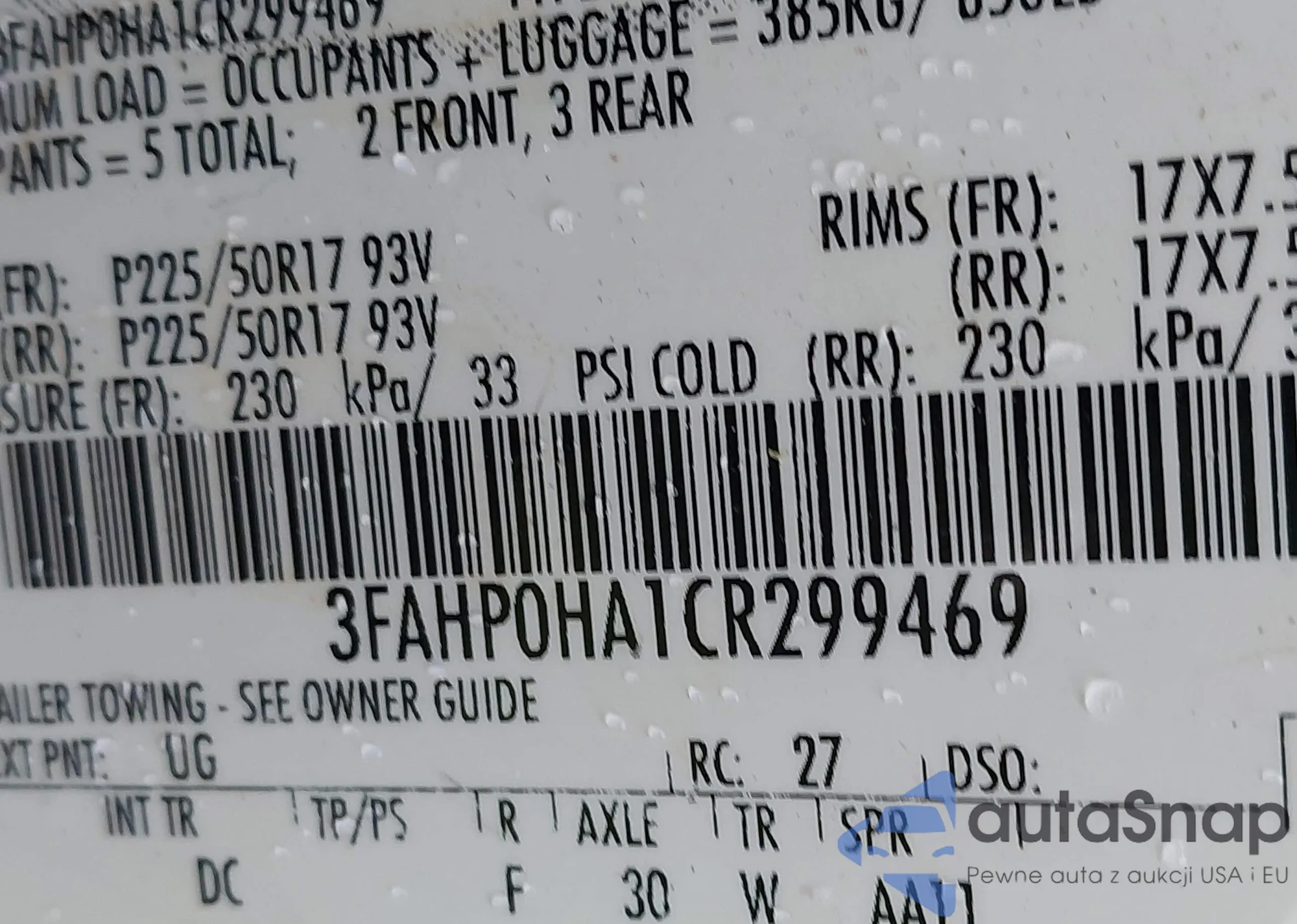 VIN: 3FAHP0HA1CR299469