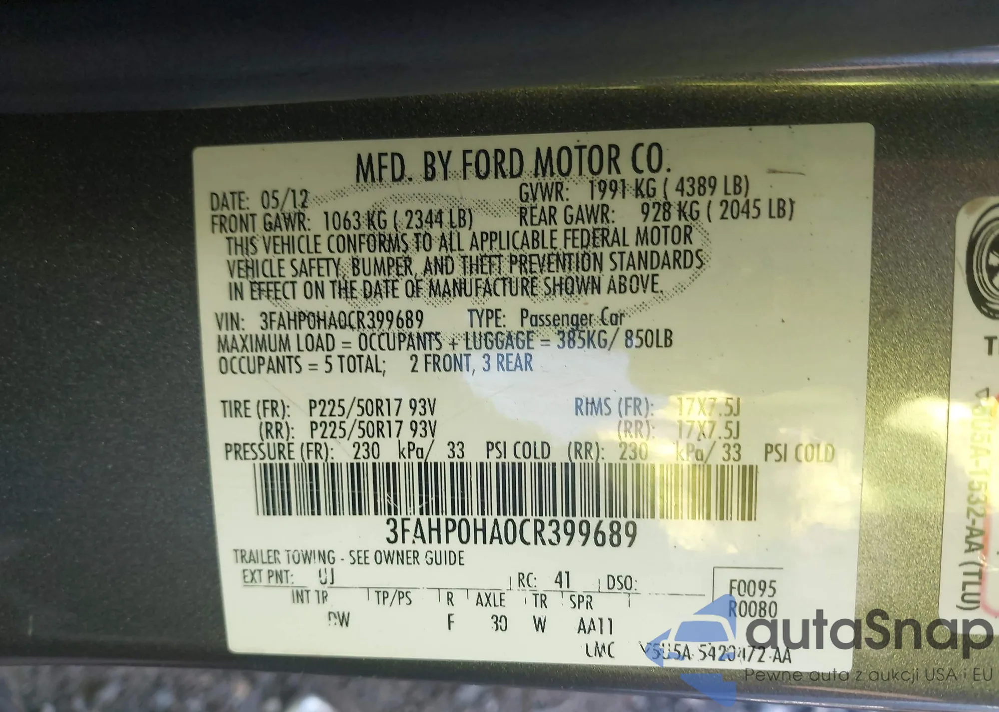 VIN: 3FAHP0HA0CR399689