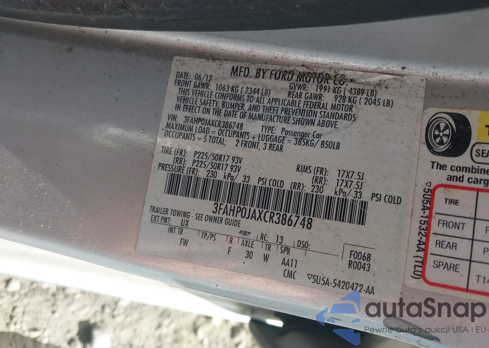 VIN: 3FAHP0JAXCR386748