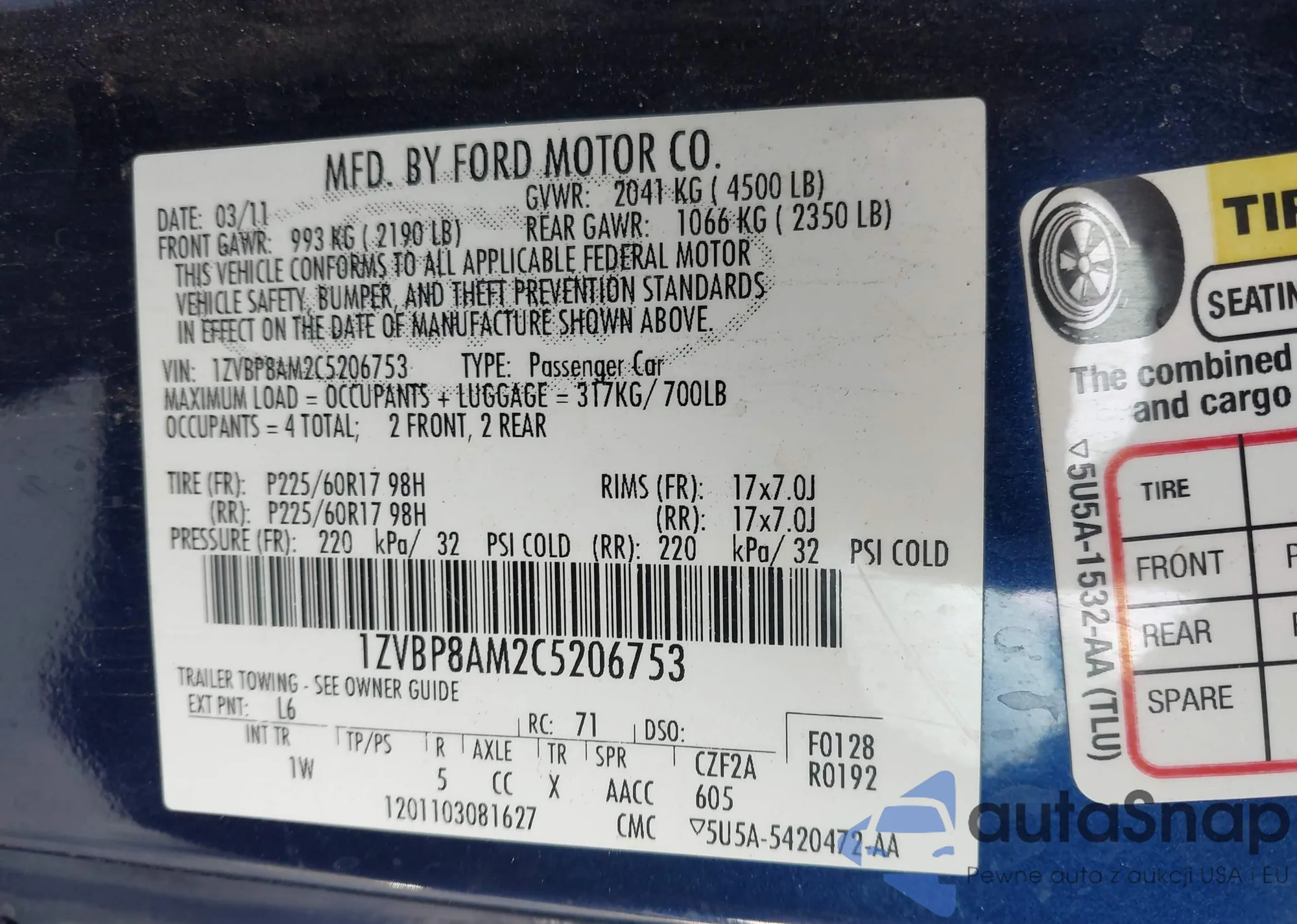 VIN: 1ZVBP8AM2C5206753