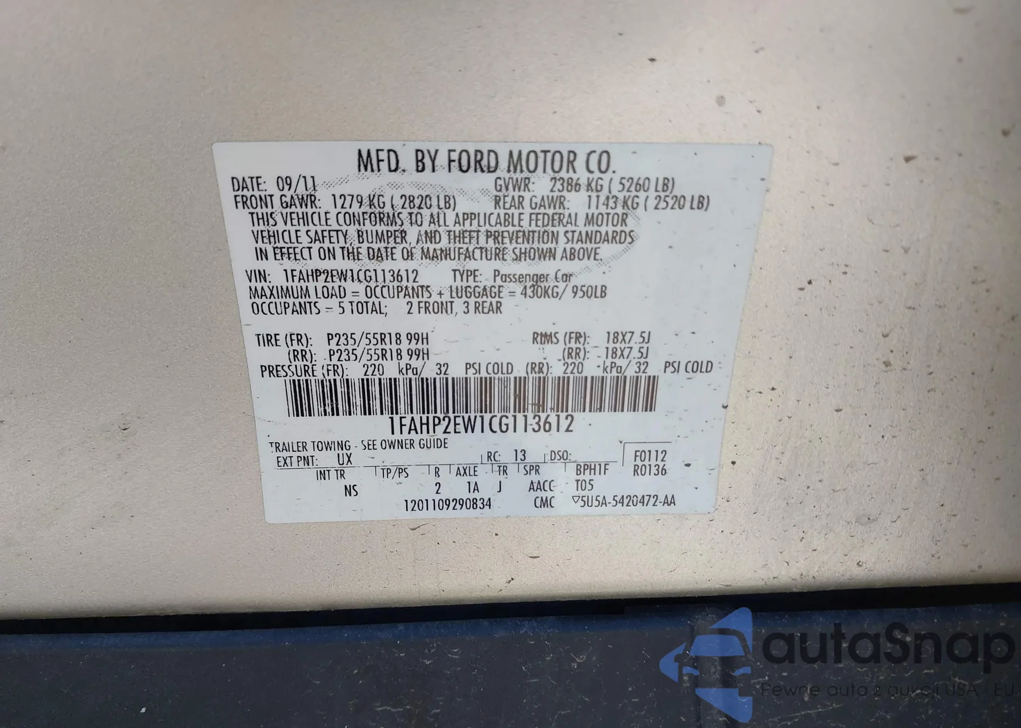 VIN: 1FAHP2EW1CG113612