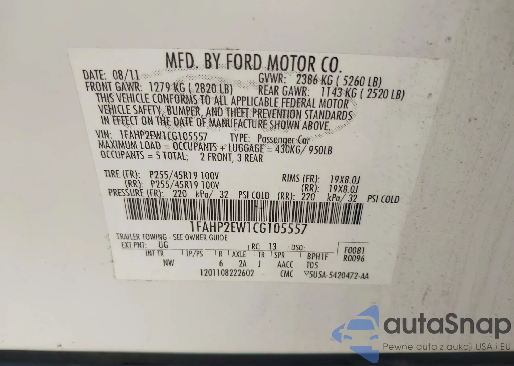 VIN: 1FAHP2EW1CG105557