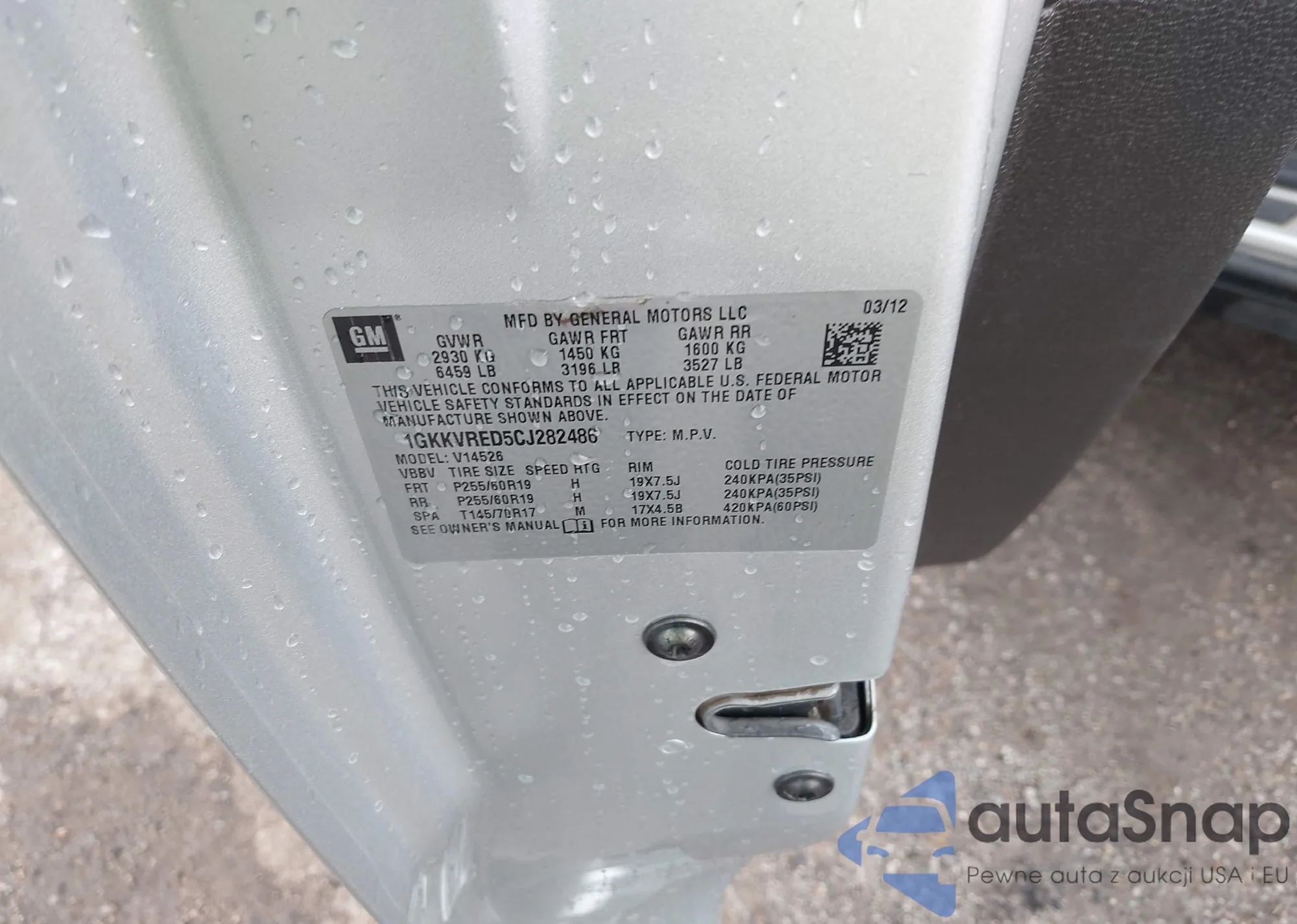 VIN: 1GKKVRED5CJ282486