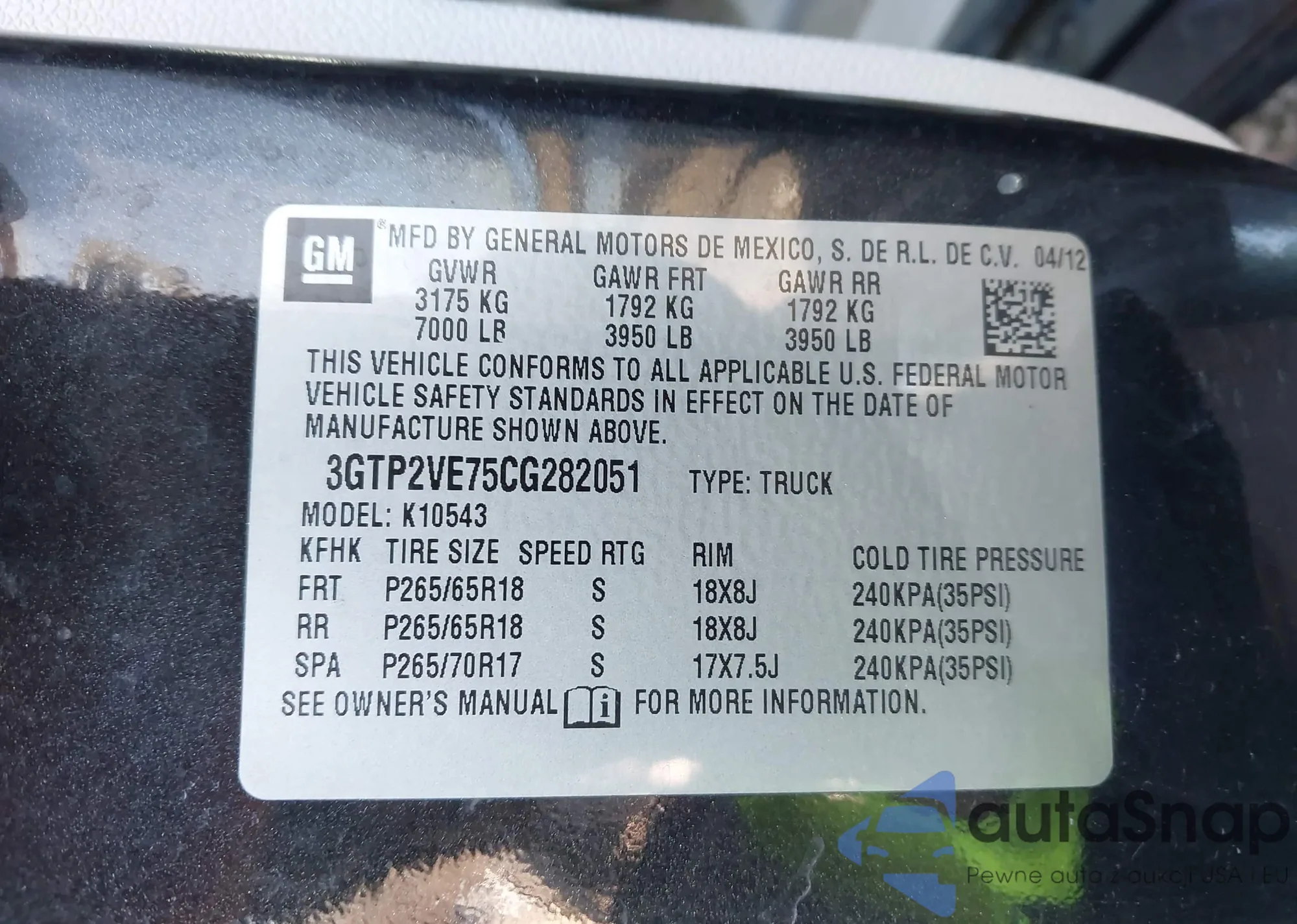 The car GMC Sierra 2012 (VIN 3GTP2VE75CG282051) has not been auctioned before. The documents are clean, and the mileage matches or is below the market average. Sold by an insurance company – we recommend purchase. Delivery to the port will take approx. 6–8 weeks.