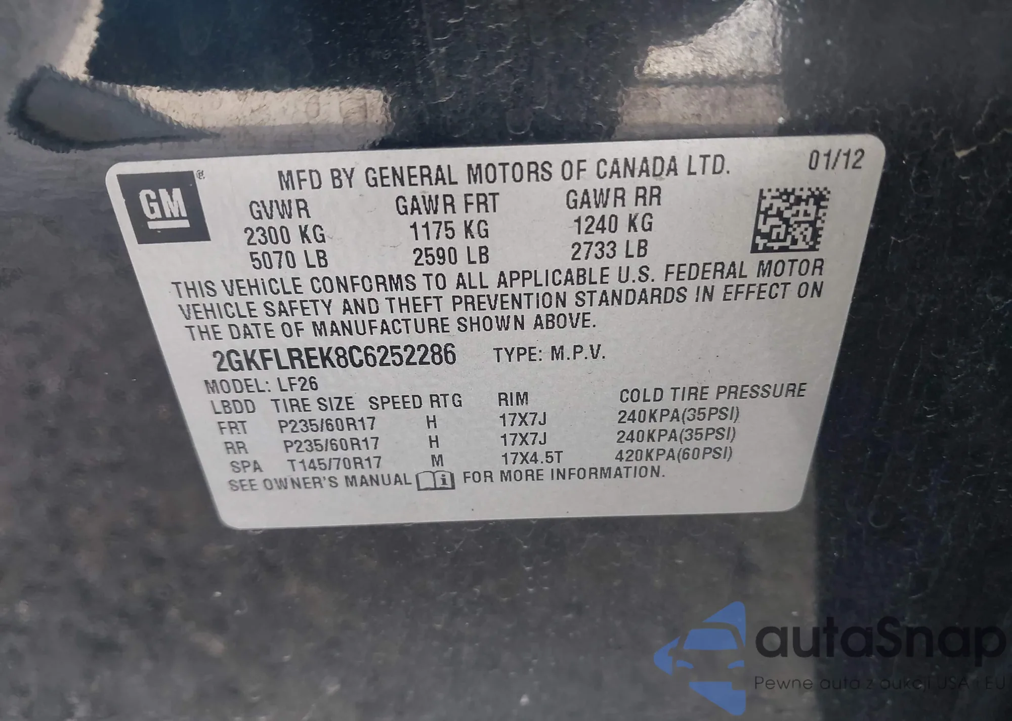 VIN: 2GKFLREK8C6252286