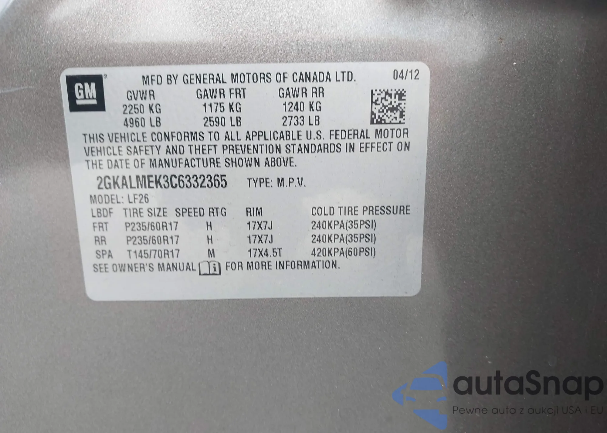 VIN: 2GKALMEK3C6332365