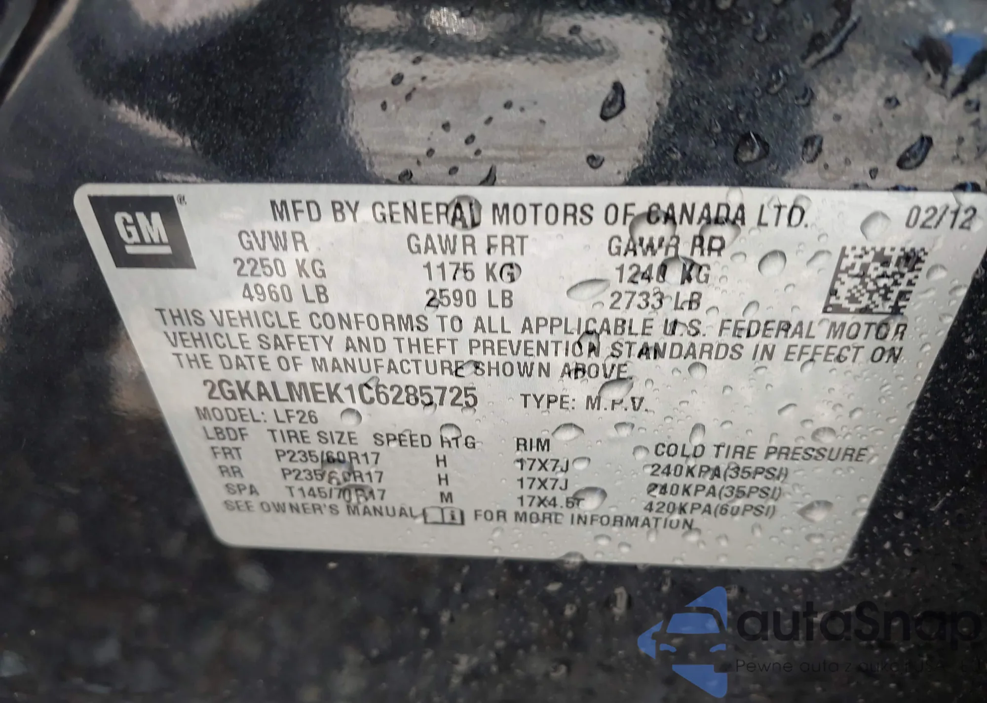 The car GMC Terrain 2012 (VIN 2GKALMEK1C6285725) has not been auctioned before. The documents are clean, and the mileage matches or is below the market average. Sold by an insurance company – we recommend purchase. Delivery to the port will take approx. 6–8 weeks.
