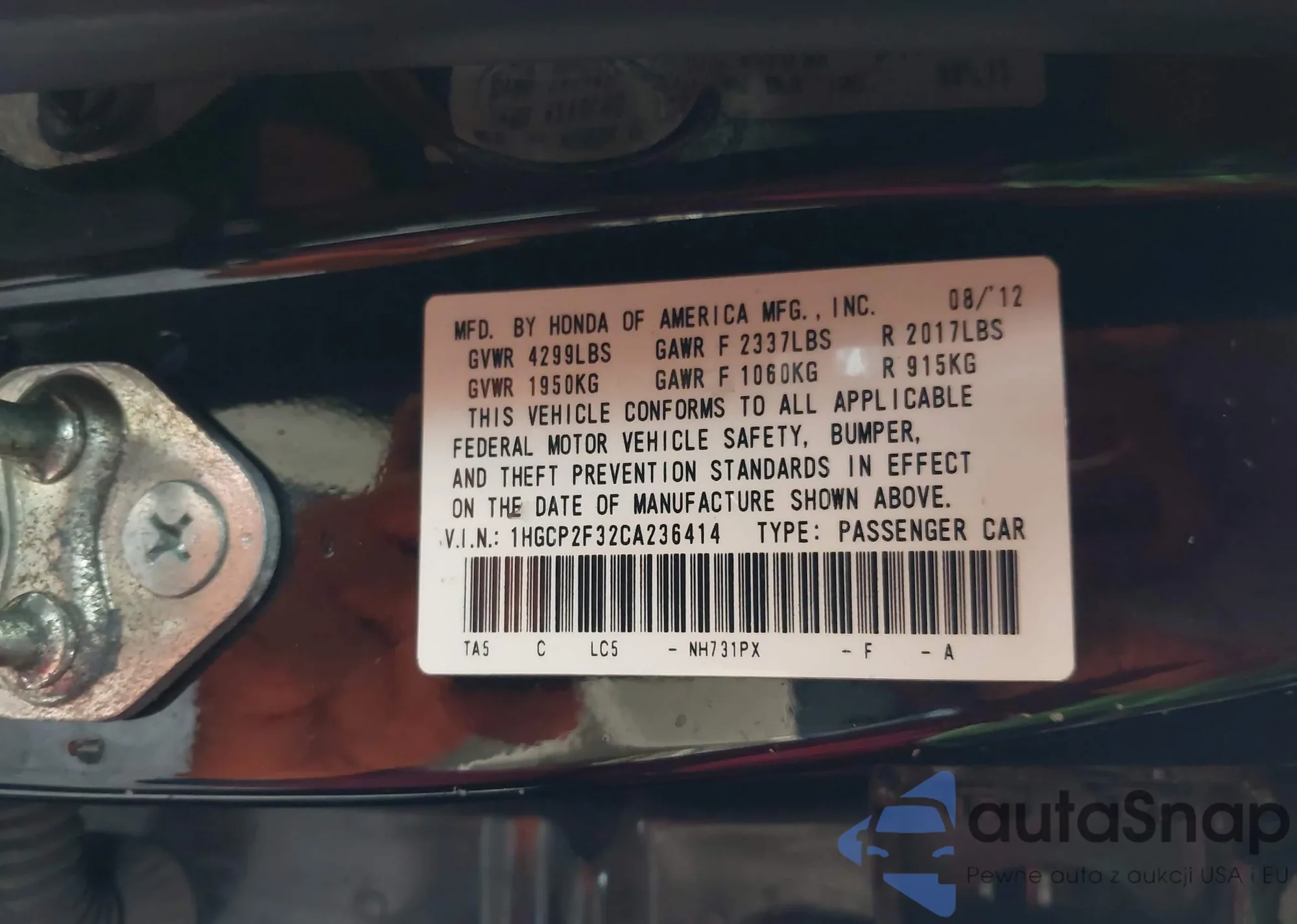 VIN: 1HGCP2F32CA236414