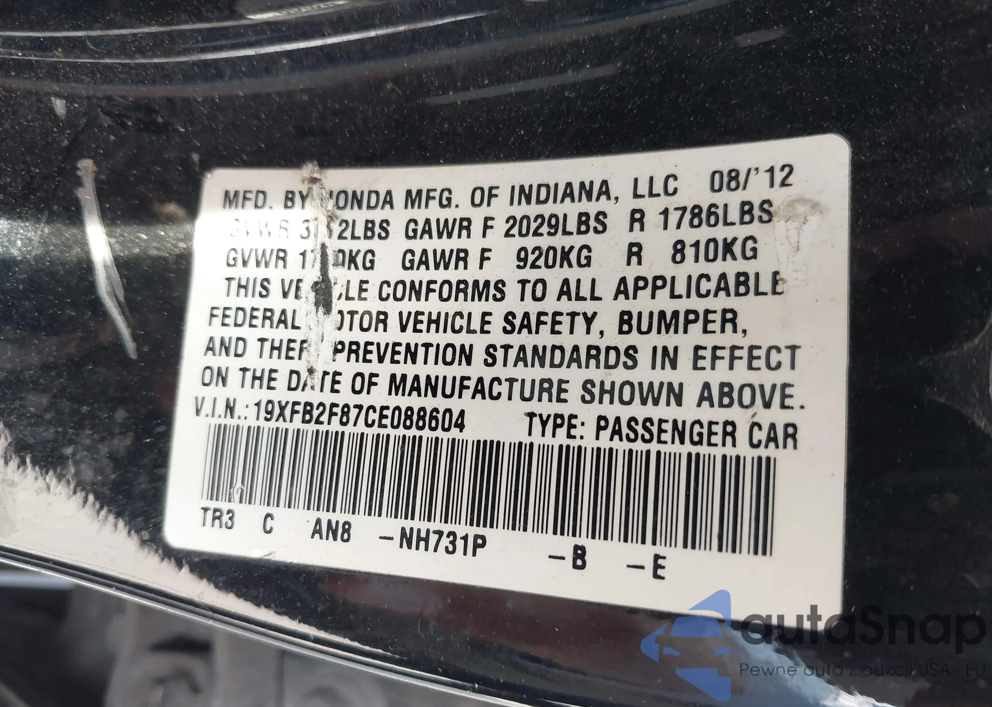 VIN: 19XFB2F87CE088604