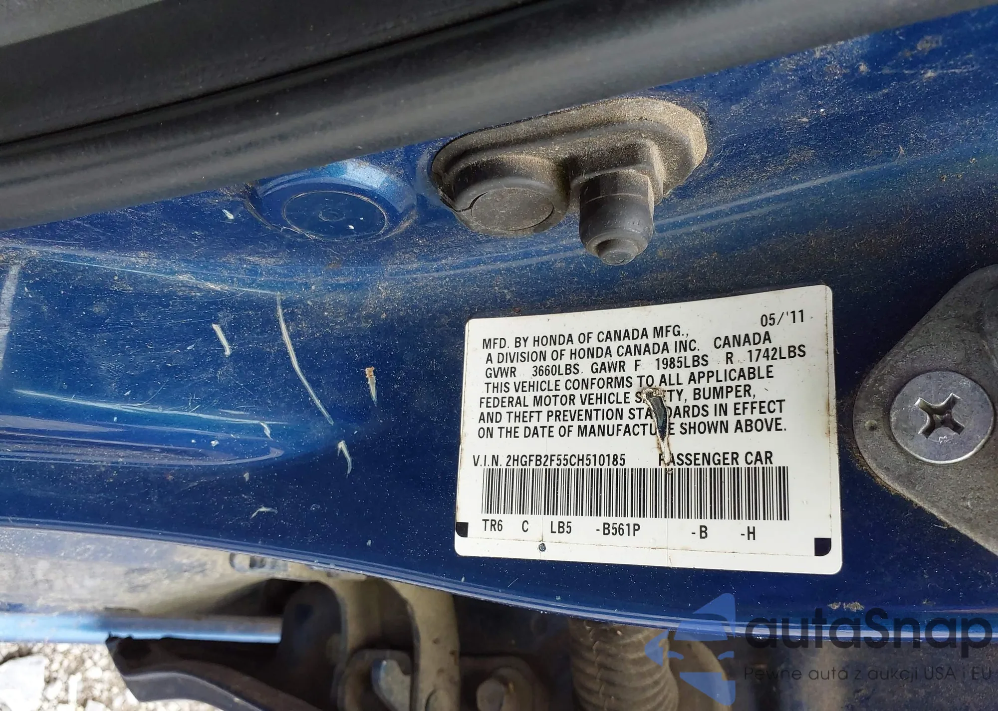 VIN: 2HGFB2F55CH510185
