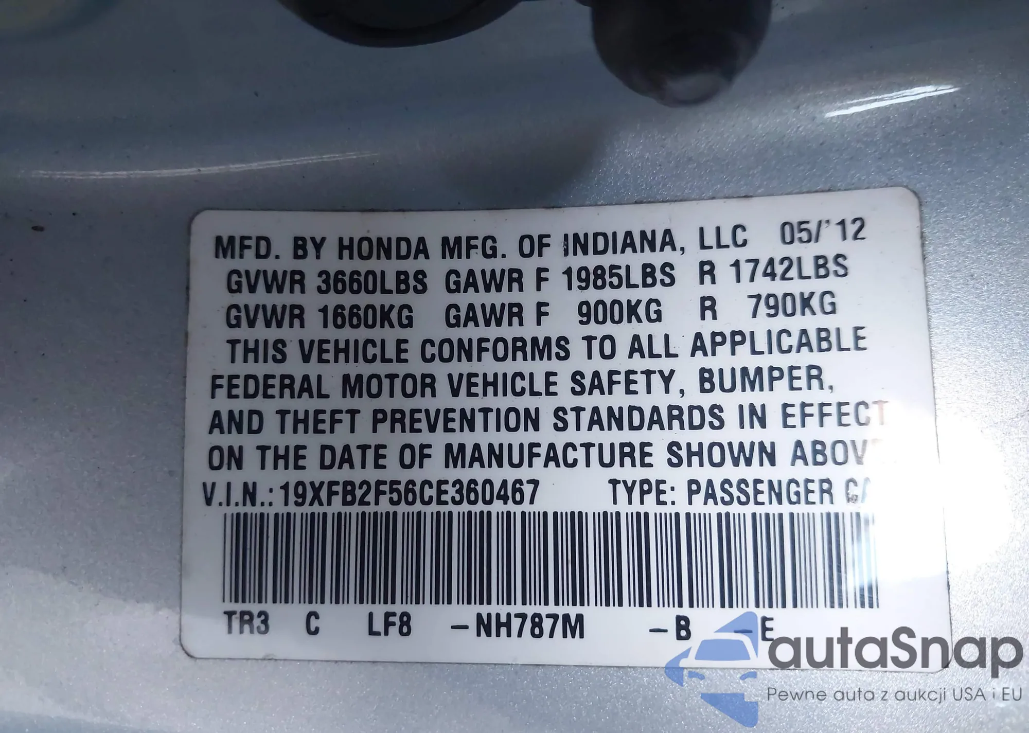 VIN: 19XFB2F56CE360467