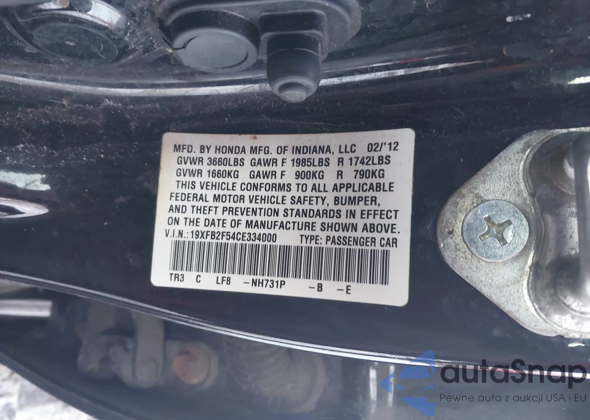VIN: 19XFB2F54CE334000