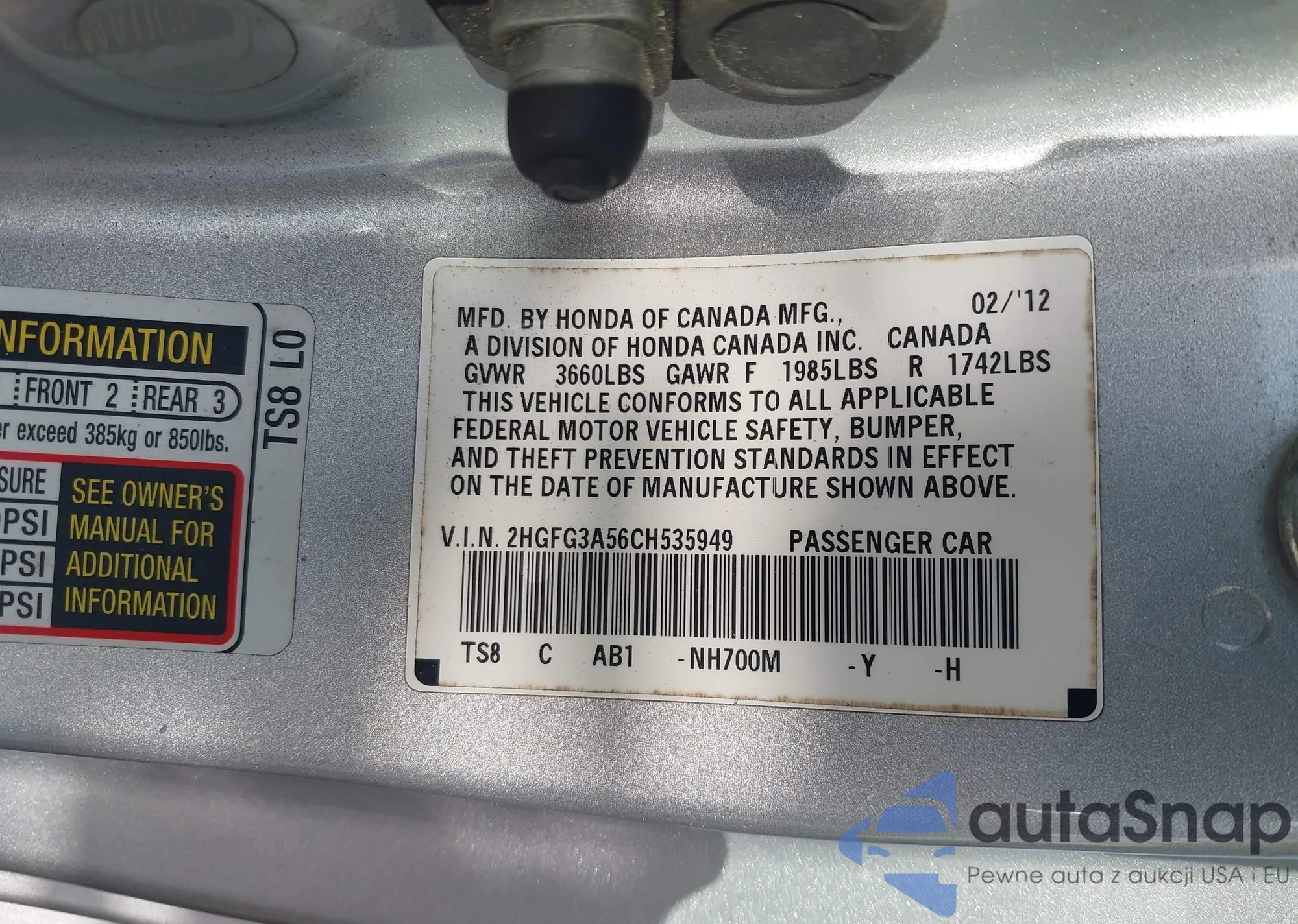 VIN: 2HGFG3A56CH535949