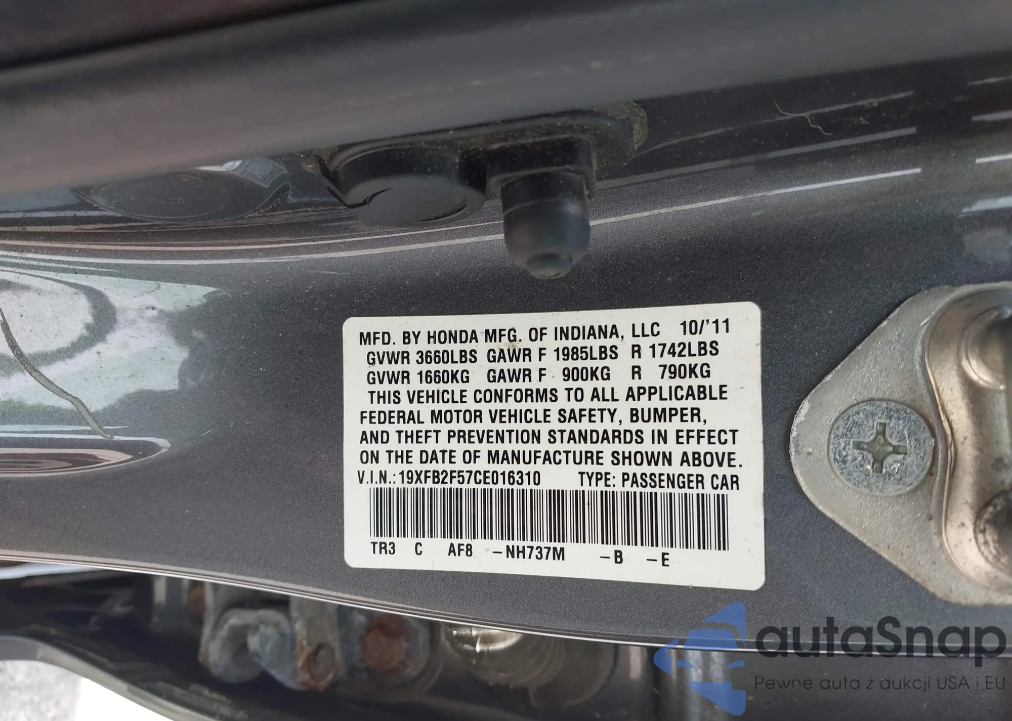 VIN: 19XFB2F57CE016310