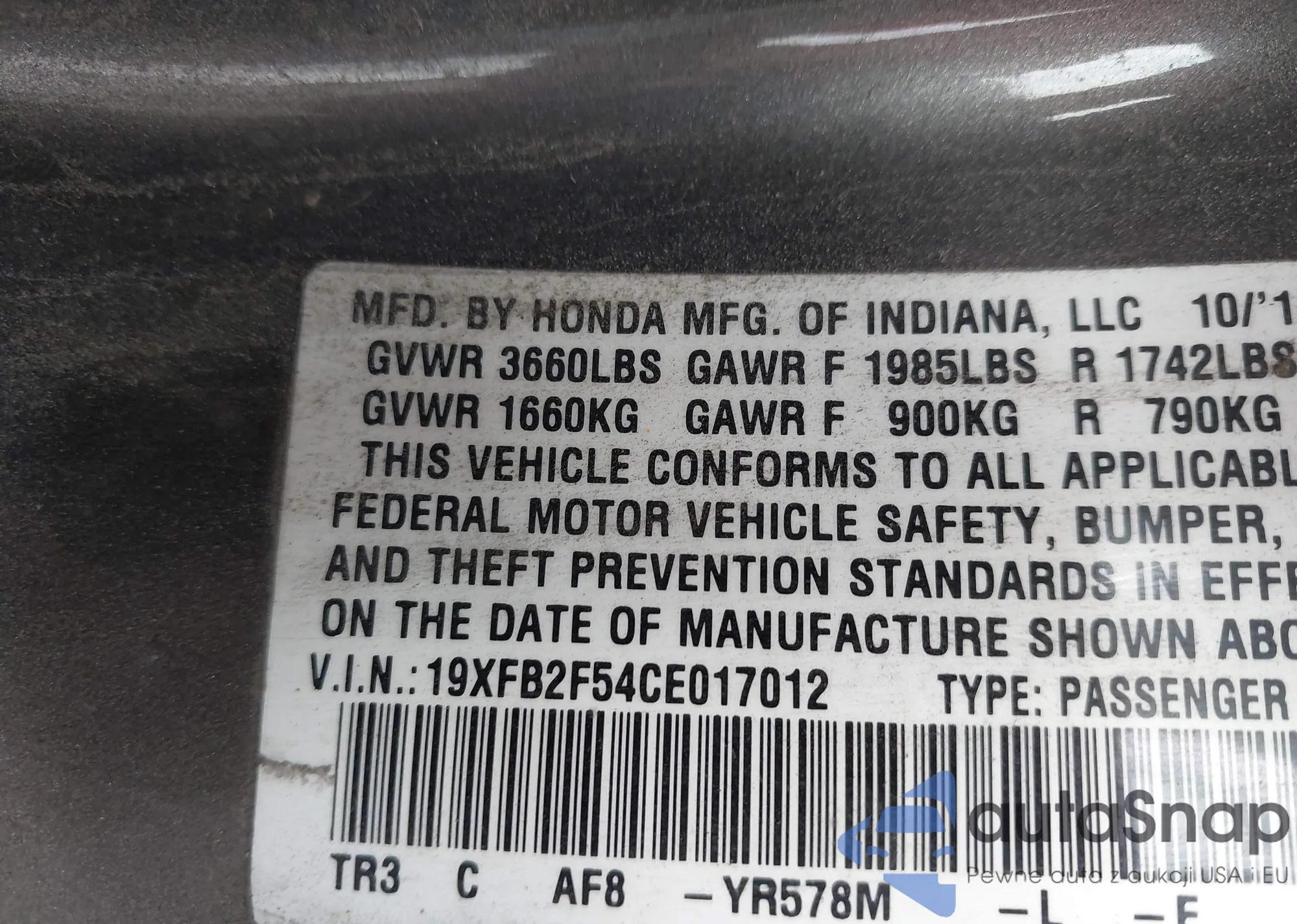 VIN: 19XFB2F54CE017012