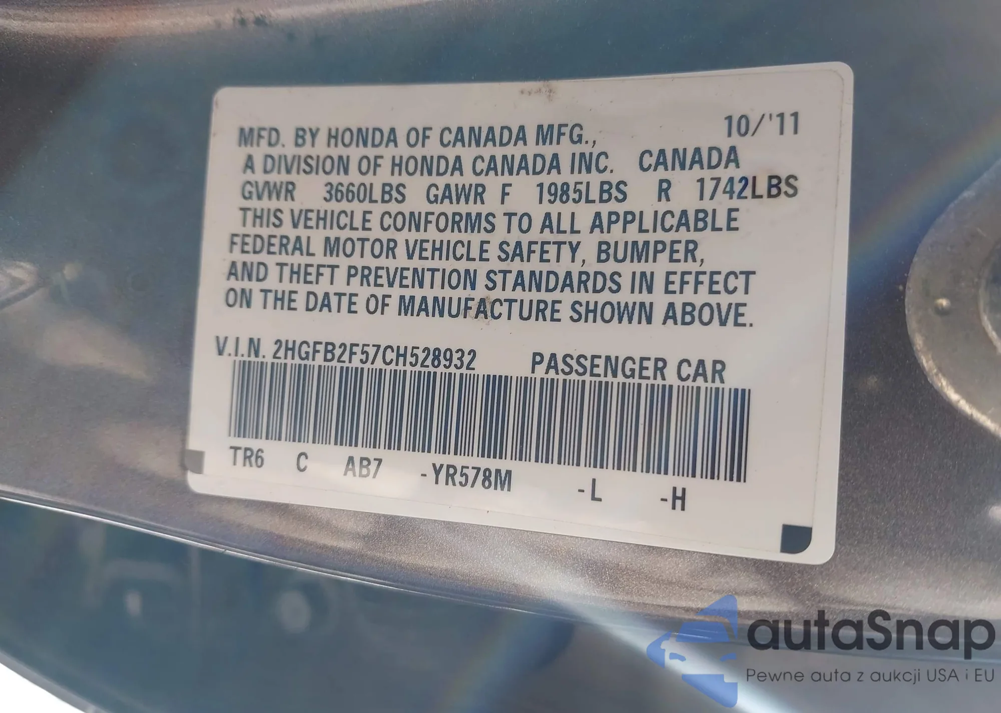 • VIN: 2HGFB2F57CH528932
