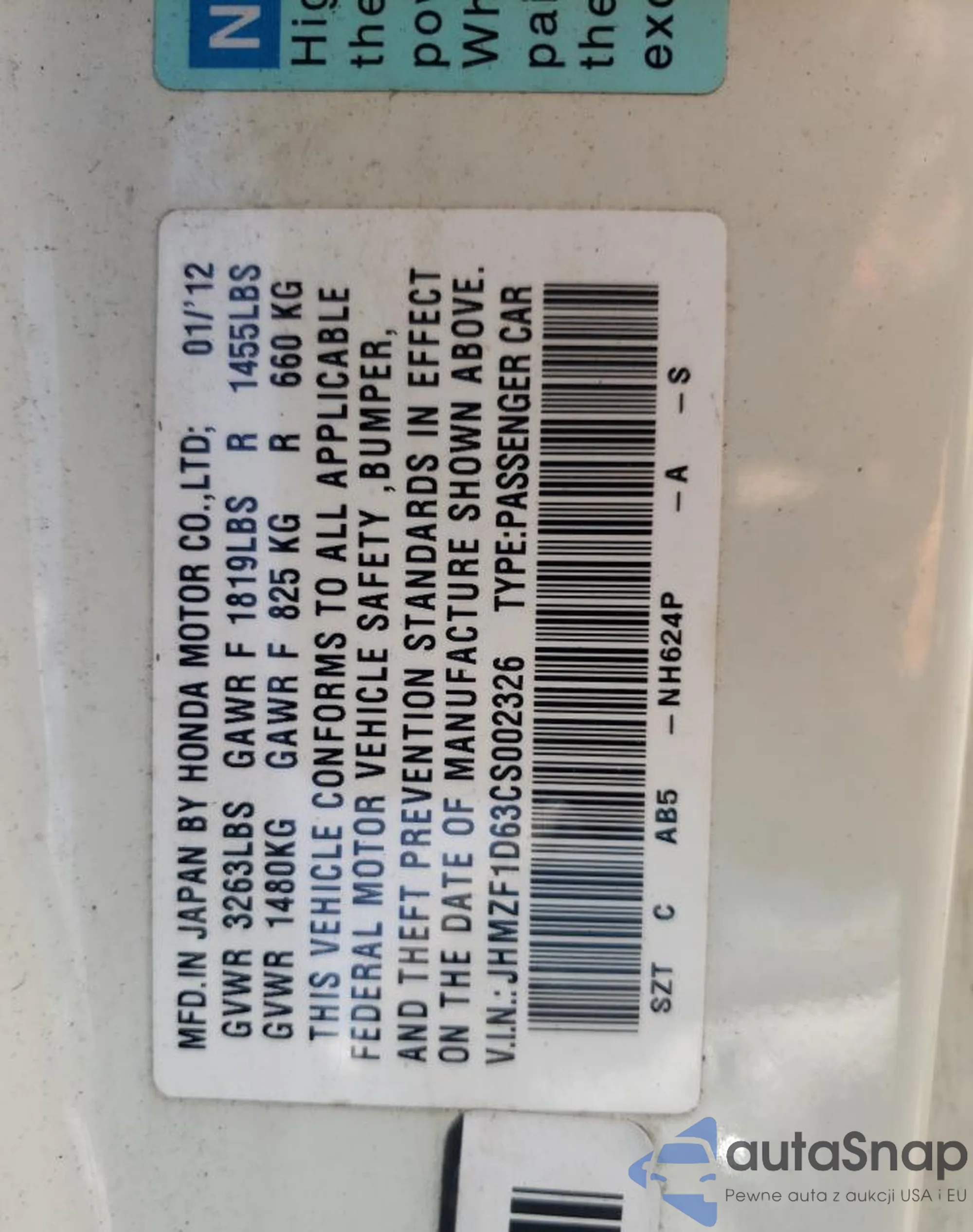 VIN: JHMZF1D63CS002326