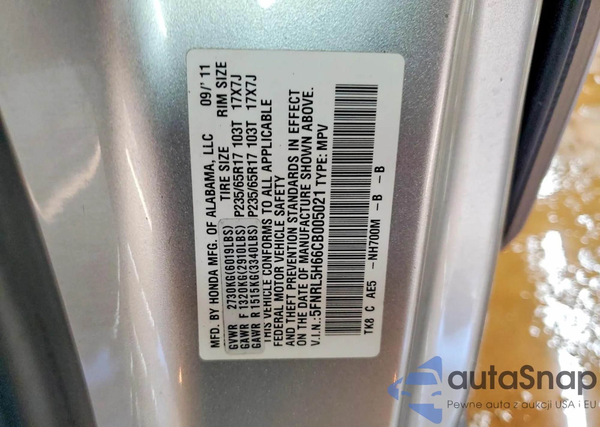 The car Honda Odyssey 2012 (VIN 5FNRL5H66CB005021) is sold by an unverified seller. We recommend checking the Carfax report and confirming registration possibilities before purchase.