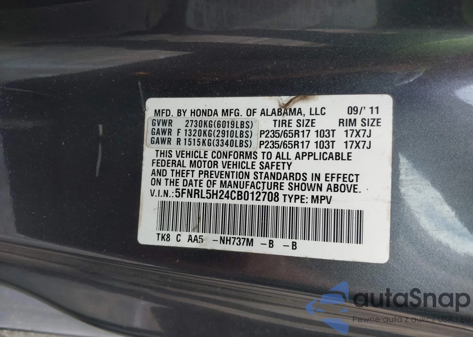 VIN: 5FNRL5H24CB012708