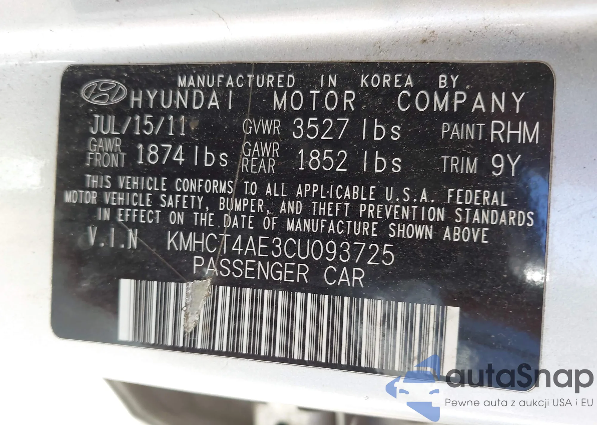 VIN: KMHCT4AE3CU093725