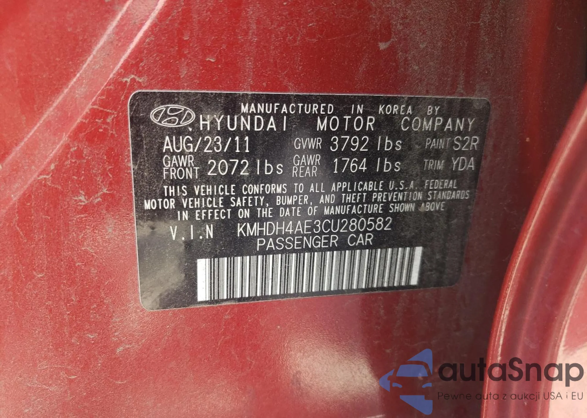 VIN: KMHDH4AE3CU280582
