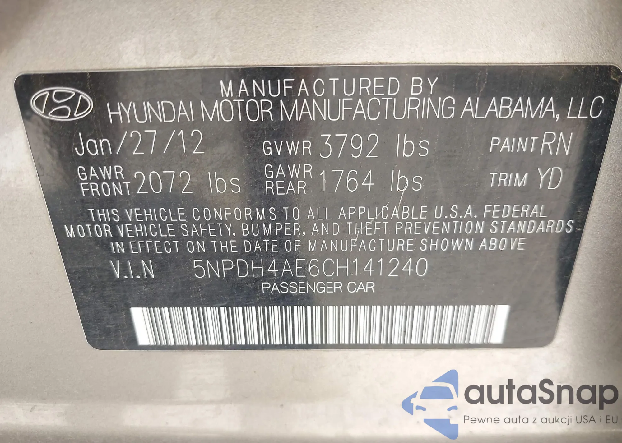 VIN: 5NPDH4AE6CH141240