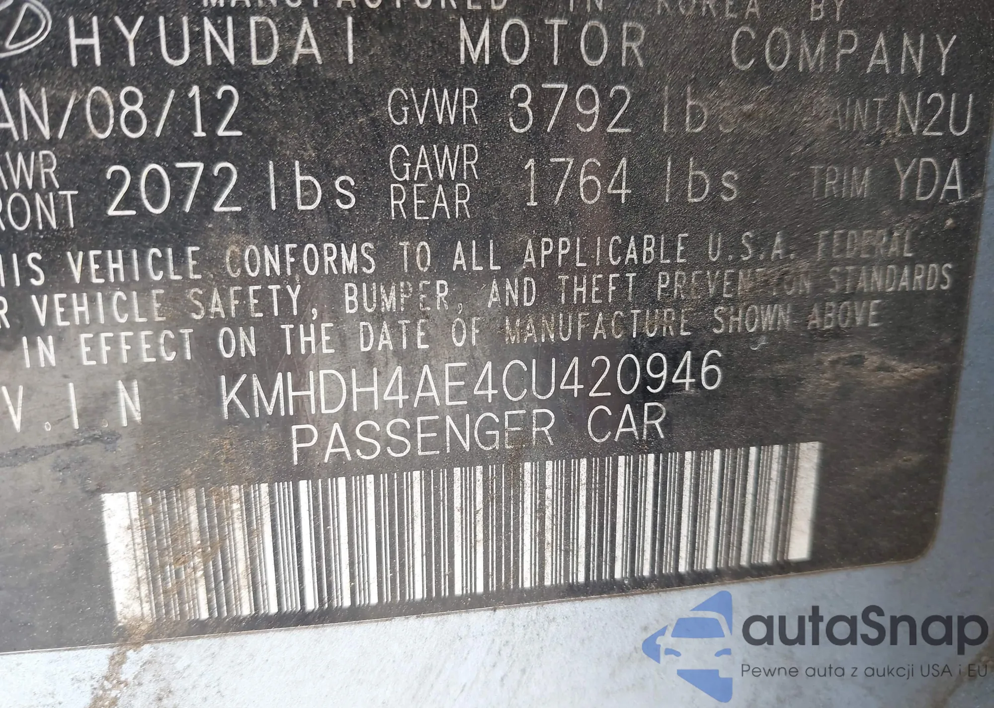 • VIN: KMHDH4AE4CU420946