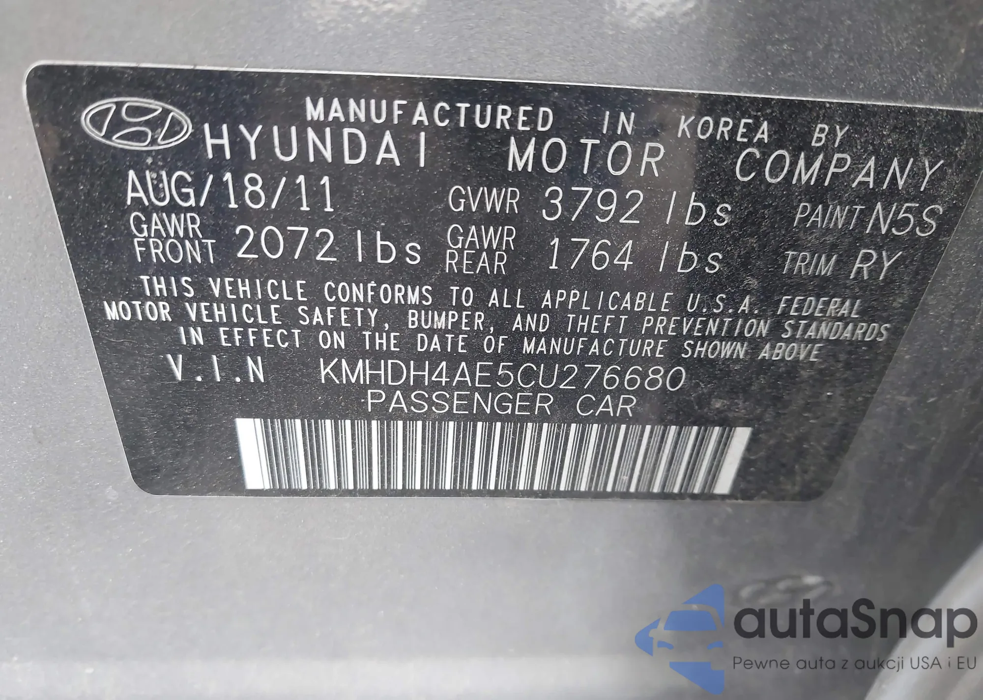 The car Hyundai Elantra 2012 (VIN KMHDH4AE5CU276680) is sold by an unverified seller. We recommend checking the Carfax report and confirming registration possibilities before purchase.